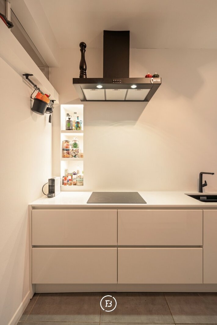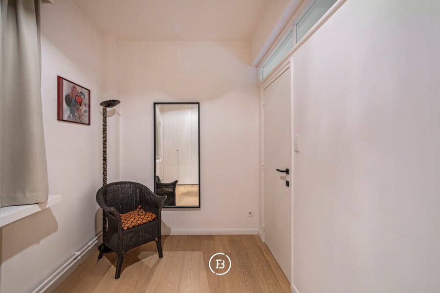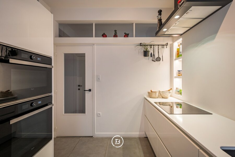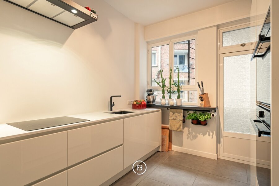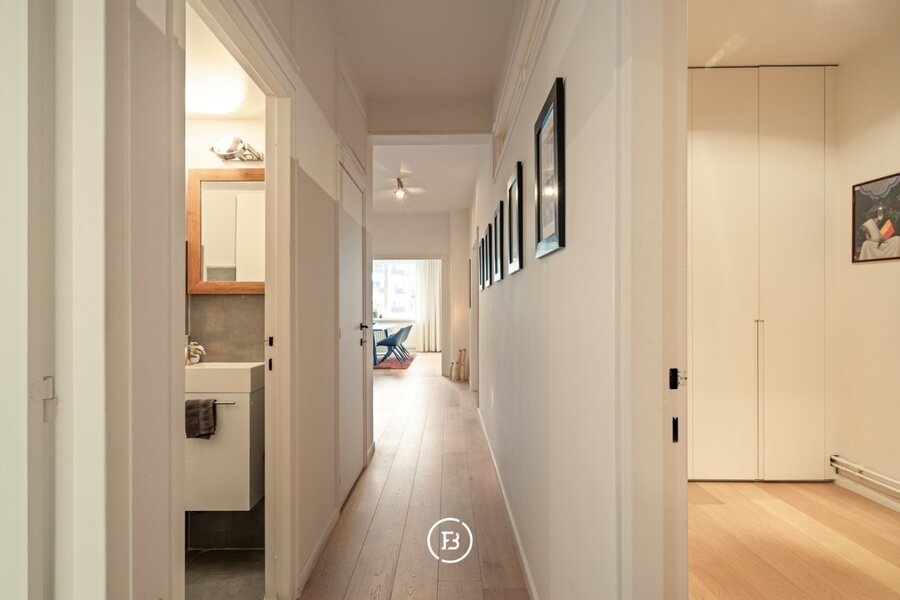 De moderne keuken beschikt over alle nodige toestellen en geeft toegang tot een klein terras. Verder telt het appartement twee volwaardige slaapkamers, waaronder een master bedroom met ensuite badkamer voorzien van dubbele wastafel, ligbad en toilet. In de nachthal bevinden zich bovendien een extra kamer (ideaal als kinderkamer of dressing) en een praktische wasruimte.