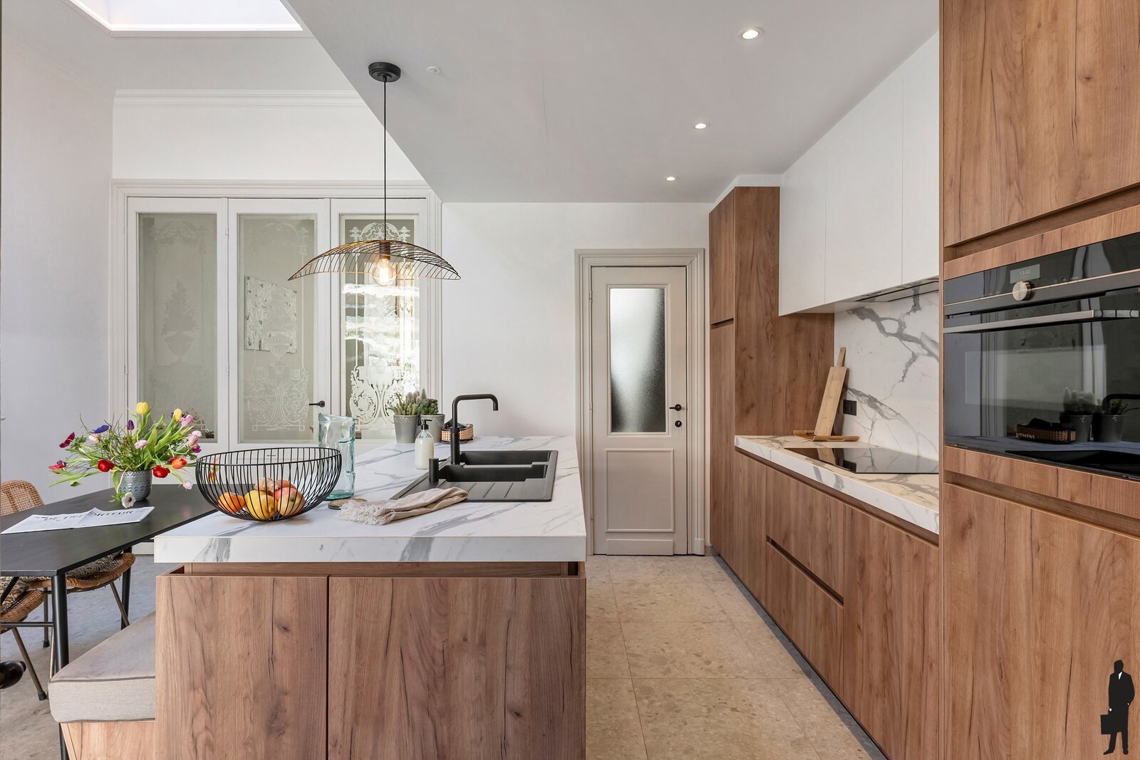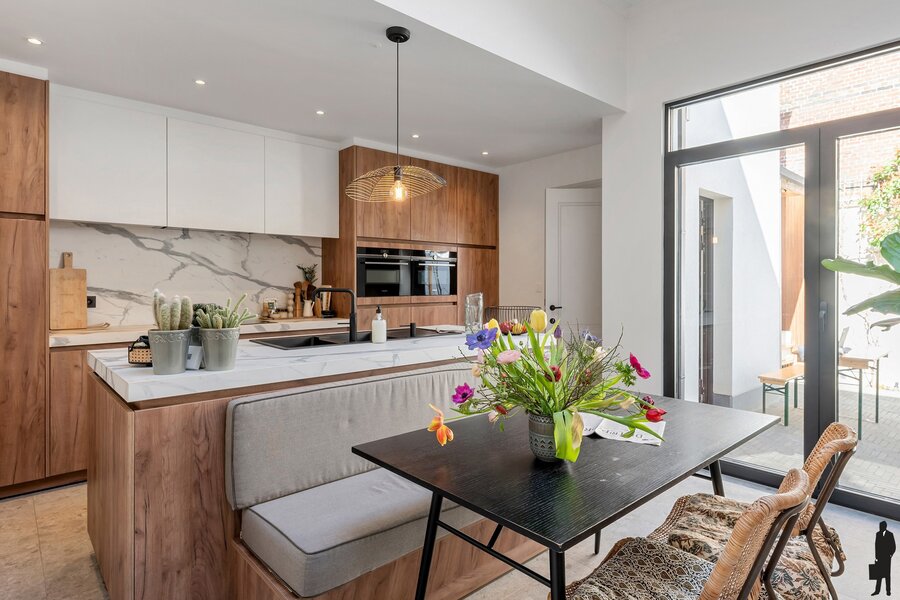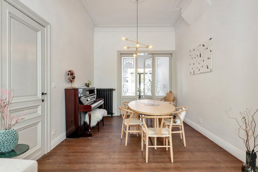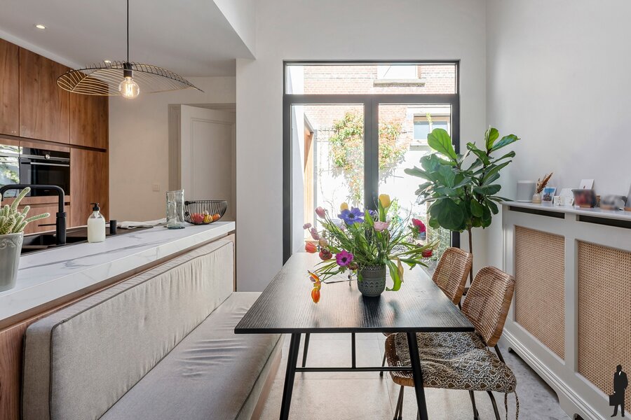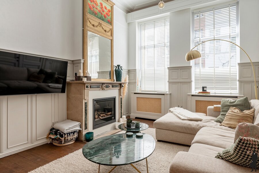 Deze woning werd zeven jaar geleden van A tot Z gerenoveerd, met respect voor het oorspronkelijke karakter. Originele elementen zoals hoge plafonds, moulures en houten vloeren werden behouden en prachtig geïntegreerd in een modern woonconcept. Het resultaat is een sfeervolle woning die charme en functionaliteit moeiteloos verenigt.
