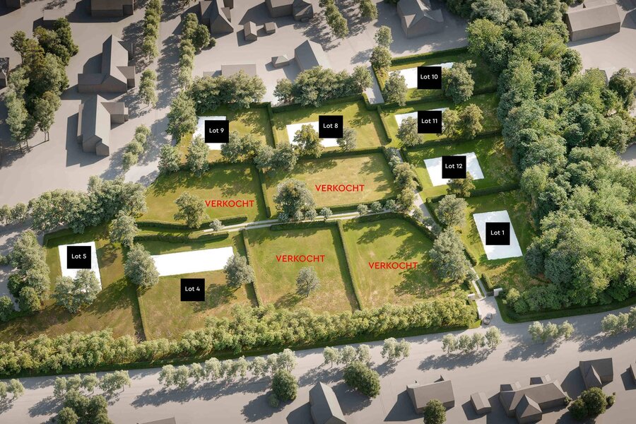 This prestigious project consists of 12 spacious plots, of which 3 have already been sold. The plots range in size from 1,106 m² to 3,652 m², with many featuring an additional dike or forest zone, making your property truly unique. This green space allows you to design an exclusive villa that seamlessly blends into its natural surroundings.