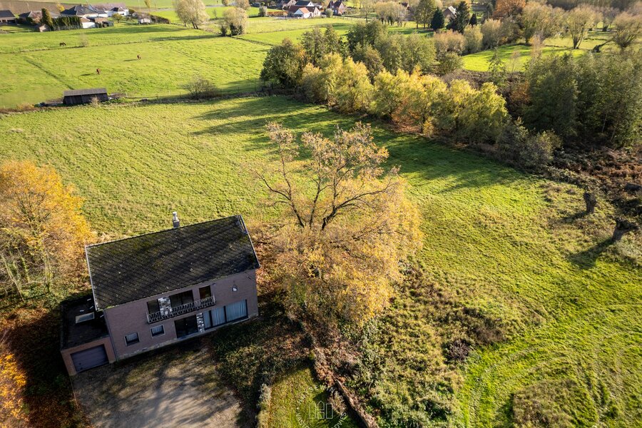 Op het einde van een doodlopende straat vinden we deze uniek gelegen te strippen/af te breken woning terug. De woning dateert uit de jaren '60 en is nagenoeg volledig in originele staat. Door het het feit dat de voorzijde van het perceel volledig is gelegen in woongebied met landelijk karakter bestaat de mogelijkheid, mits aanleg wegenis, om hier een verkaveling voor vijf open bebouwingen te creëren.