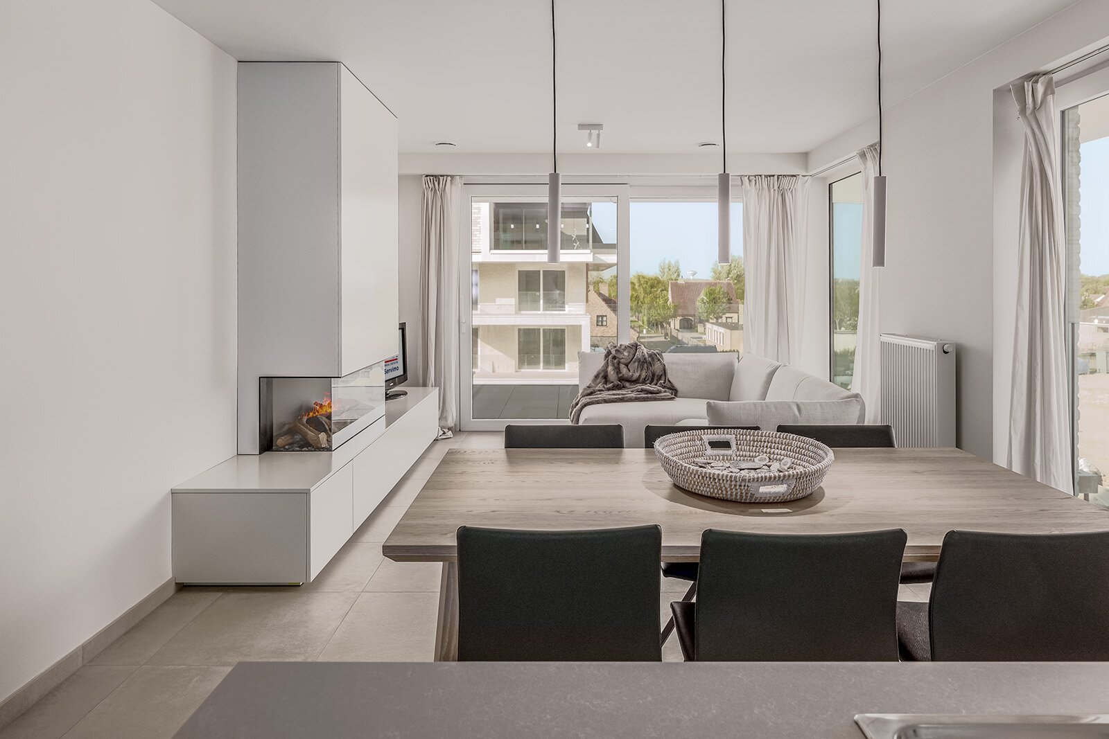 - op de 3de verdieping: Inkomhal, gastentoilet, berging met aansluiting voor wasmachine, trap, leefruimte met open keuken , zithoek, eethoek, ontbijthoek en aangrenzend terras, slaapkamer 1 met on-suite badkamer met dubbele wastafel in meubel en keuze tussen ligbad, inloopdouche of hoekdouche,