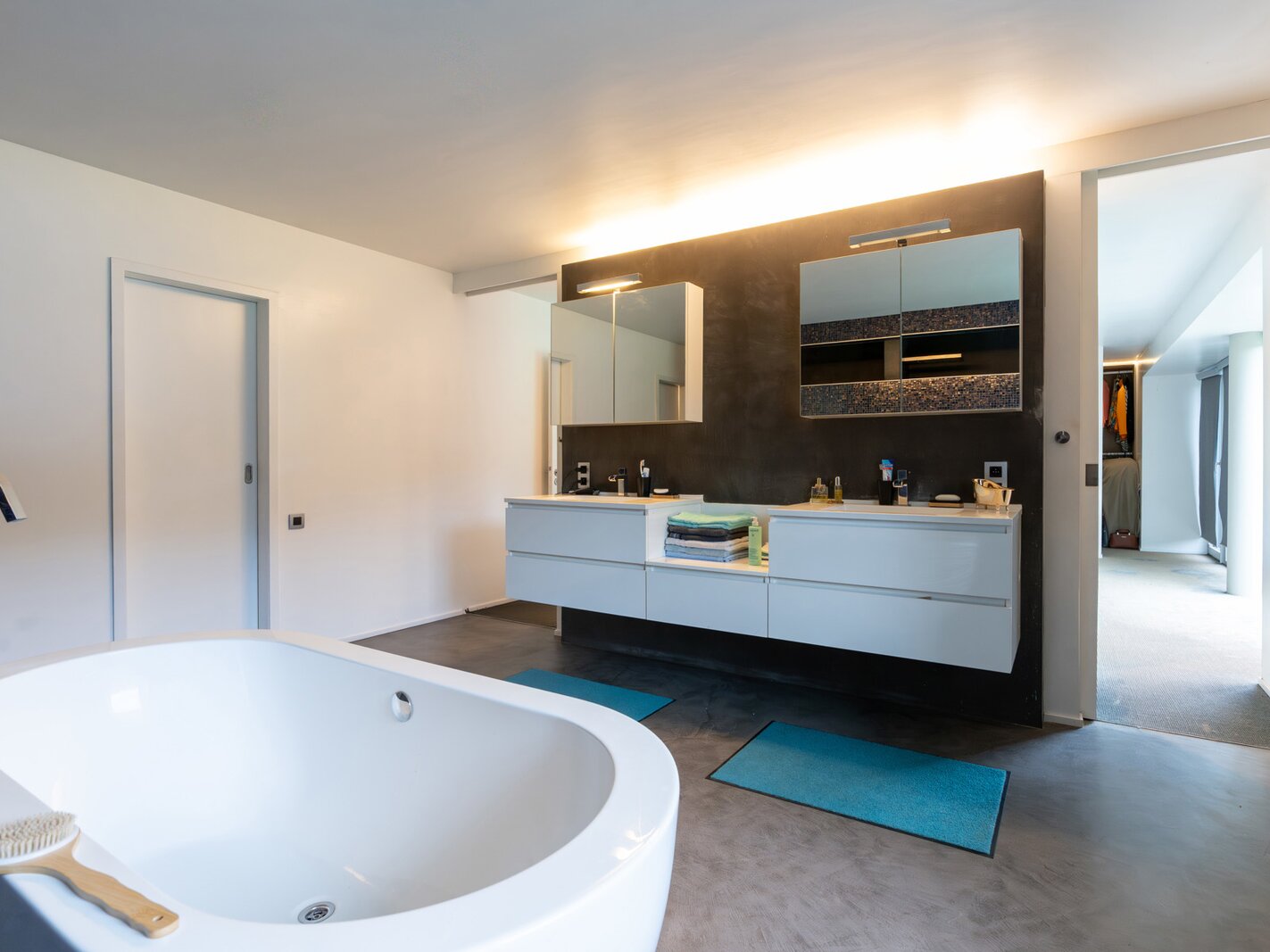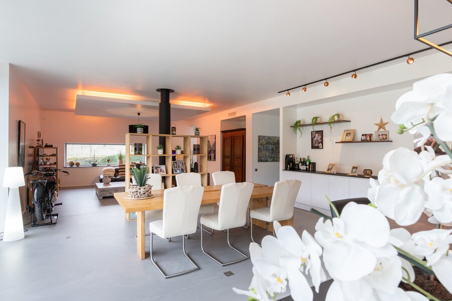 The living area (±240 m²) impresses with its majestic volumes: a 68 m² living room bathed in light thanks to its floor-to-ceiling windows overlooking the garden, as well as a new, designer open-plan kitchen. Upstairs: a master suite with double dressing room, bathroom and laundry room, two bedrooms, an office and a shower room.