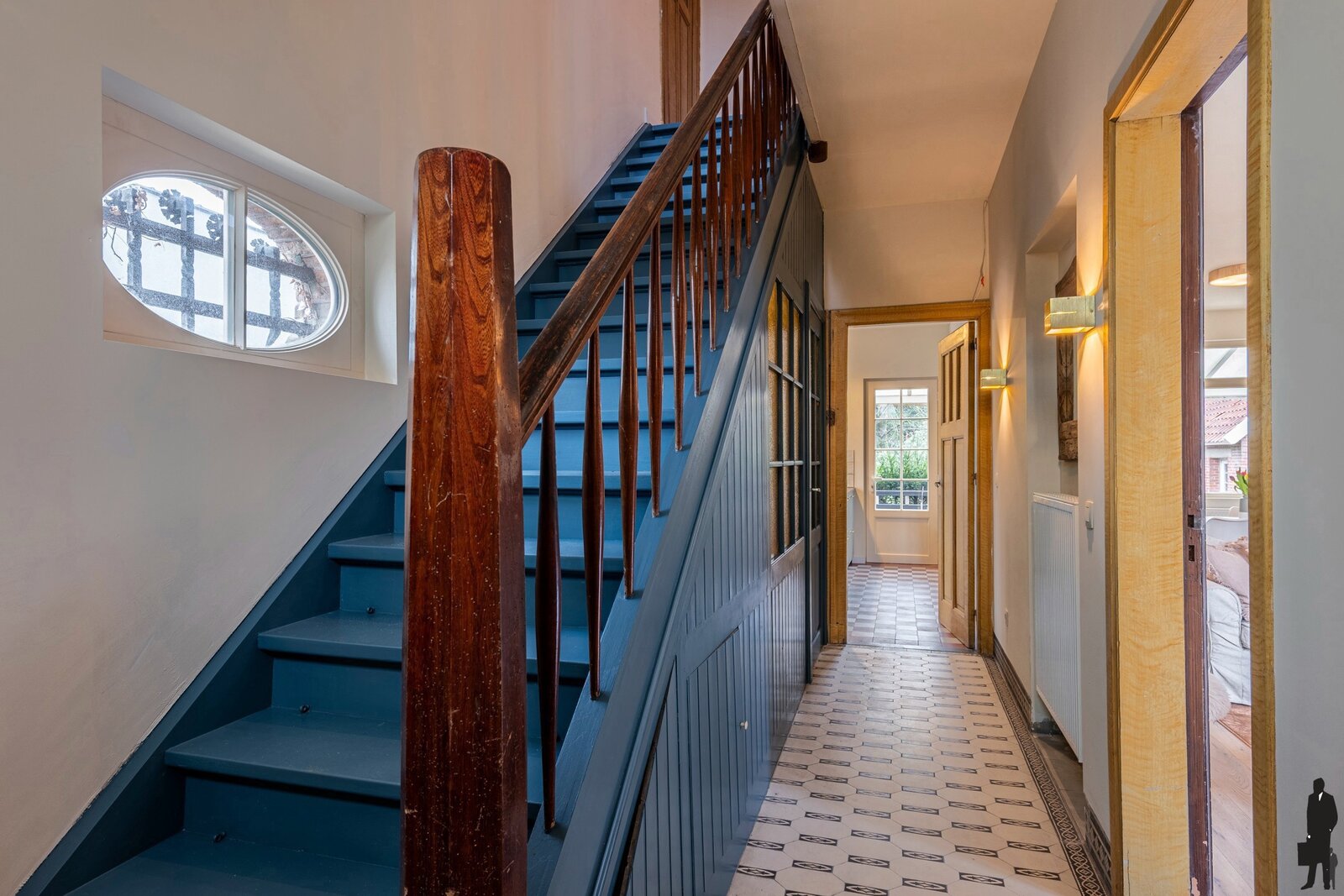 - Een ruime inkomhal met authentieke stenen vloer