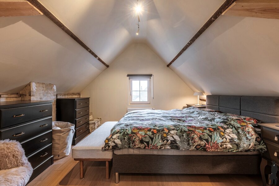 - Een royale hoofdslaapkamer van ca. 30 m² met parketvloer