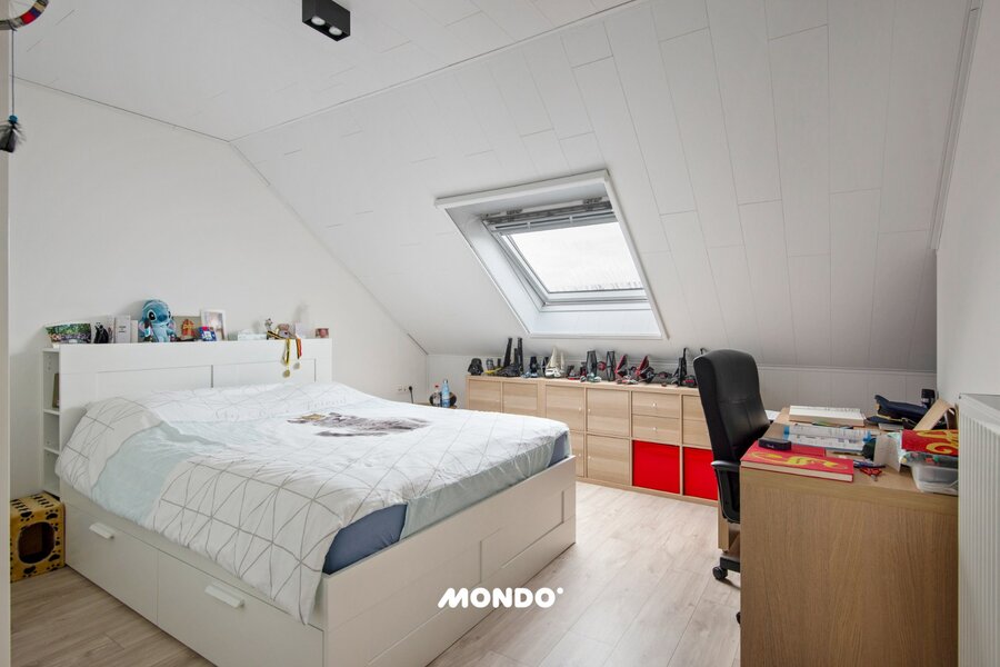 De vaste trap leidt naar de afgewerkte zolderverdieping met twee bijkomende kamers 16 m² en 30 m² samen met een technische ruimte en opslagruimte.