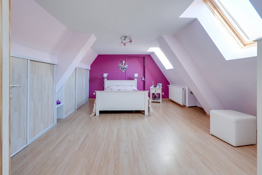 The first house, semi single-storey, features an entrance hall, a bright living room of approximately 40 m², a fully equipped kitchen, a bedroom and a bathroom on the ground floor, as well as two large bedrooms upstairs.