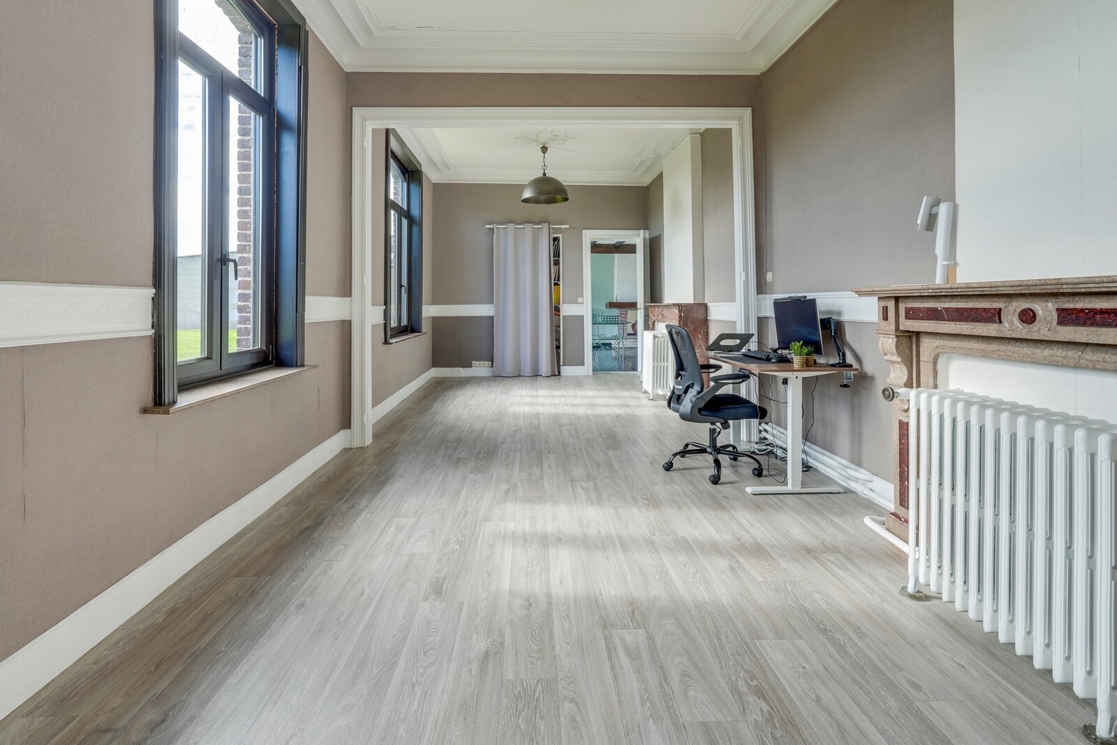 The second house, to be renovated, offers a spacious living area with a semi-equipped kitchen of 54 m², a veranda overlooking the garden, a lounge, a bathroom, four bedrooms, an office, and a convertible attic of 40 m².