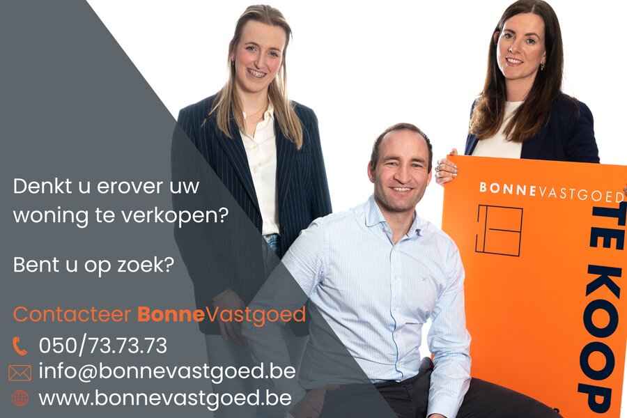 Voor meer info of voor het inplannen van een bezoek, aarzel niet om ons te contacteren via info@bonnevastgoed.be of via 050/73.73.73.