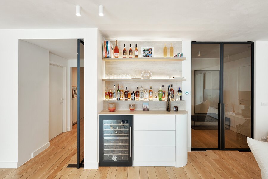 At the rear, a sunny terrace is accessible from the bedrooms, all fitted with electric shutters. The apartment comes with a private cellar and a communal bicycle storage room. Option to purchase a parking space in a nearby residence.