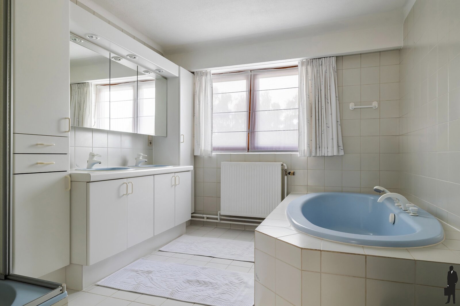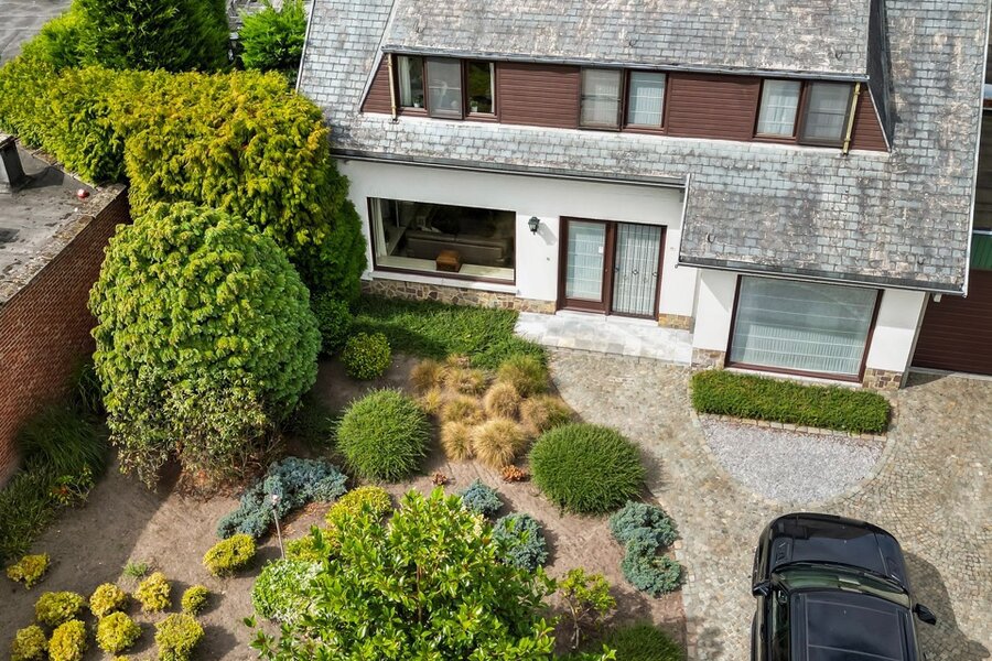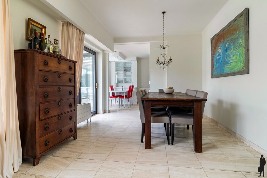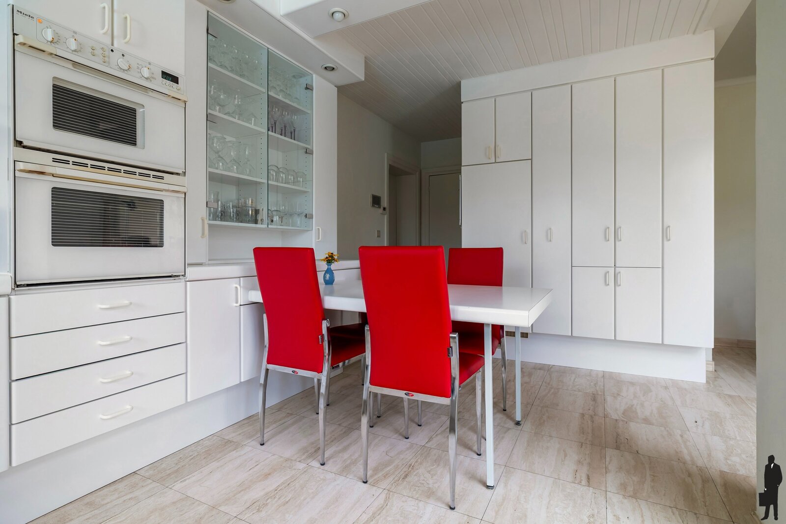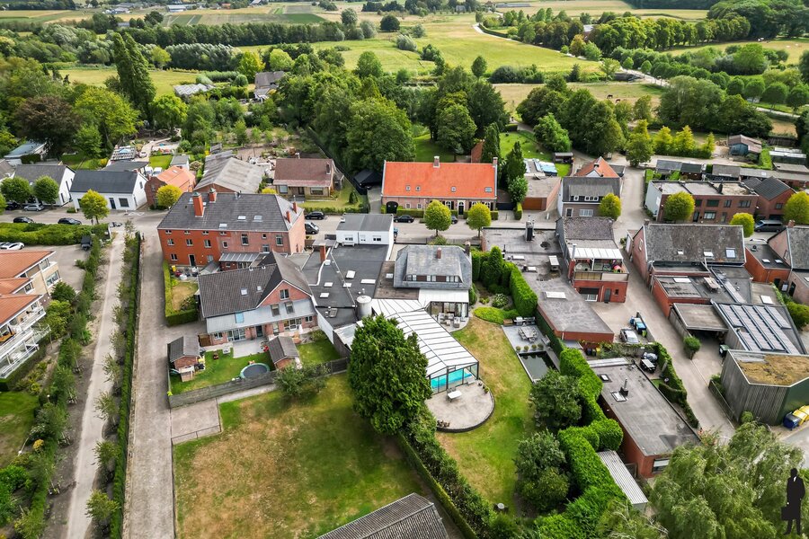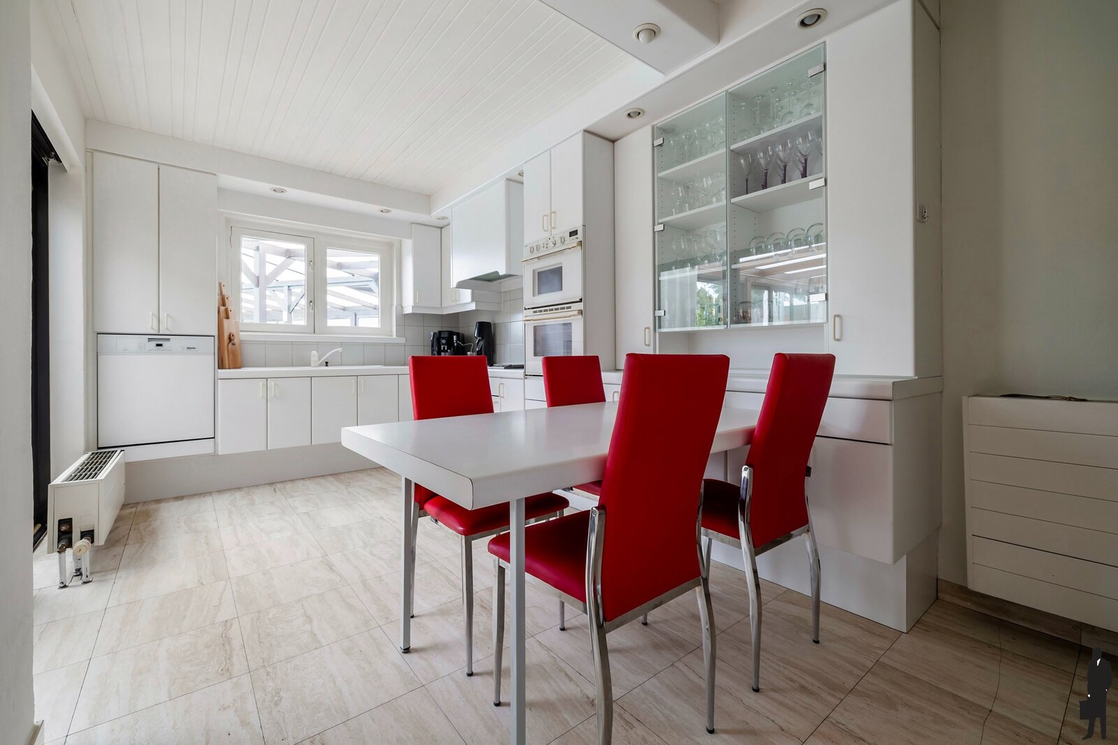 - Indrukwekkende ruimte (ca. 160 m²) met binnenzwembad en meerdere schuifpuien naar de achtertuin