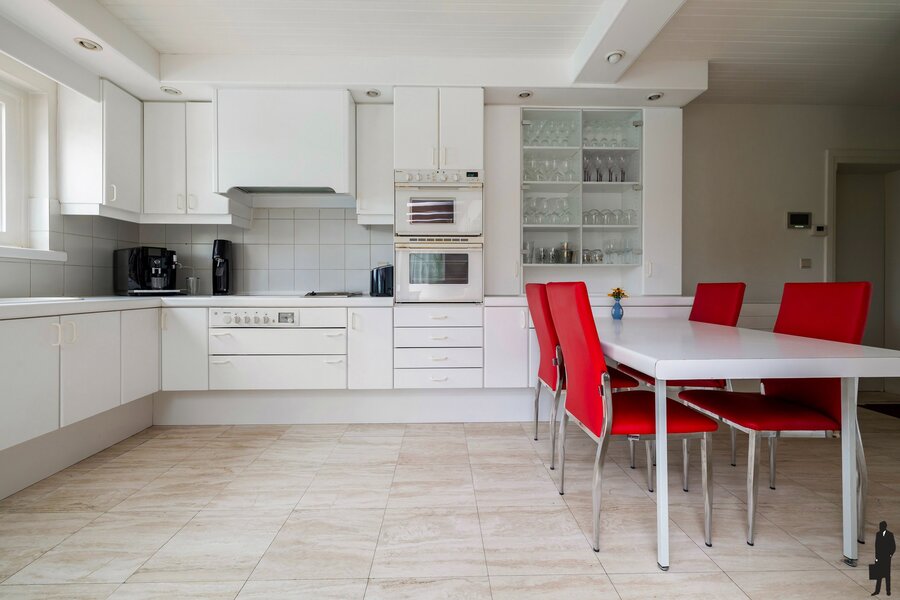 - 4-pits elektrische kookplaat, afzuigkap, vaatwasser, oven, combi-oven en koelkast
