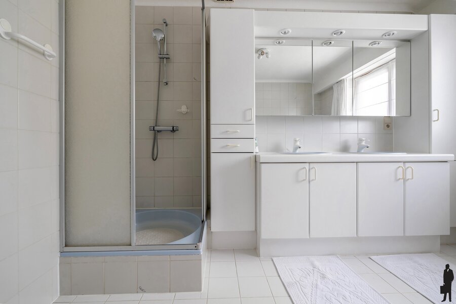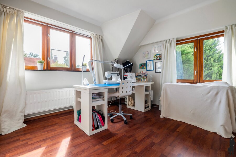 - Ruime garage (ca. 3.01 x 12.32 m) met elektrische roldeur, uitstortgootsteen, dakraam en installaties voor het zwembad