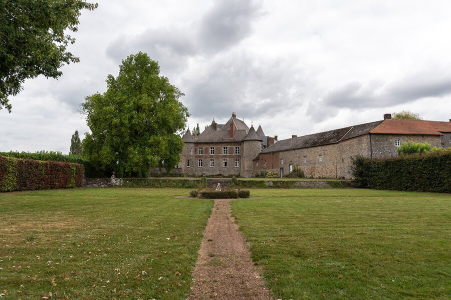 Het interieur bevat historische elementen, terwijl de terrasvormige tuinen, aangelegd in Franse stijl, een harmonieus uitzicht bieden. Een vijver, een bos en een boomgaard maken het landschap compleet. Het landgoed ligt op een strategische locatie, op minder dan een uur rijden van Brussel, Rijsel, Namen en Doornik, maar biedt toch een rustige en beschermde omgeving.