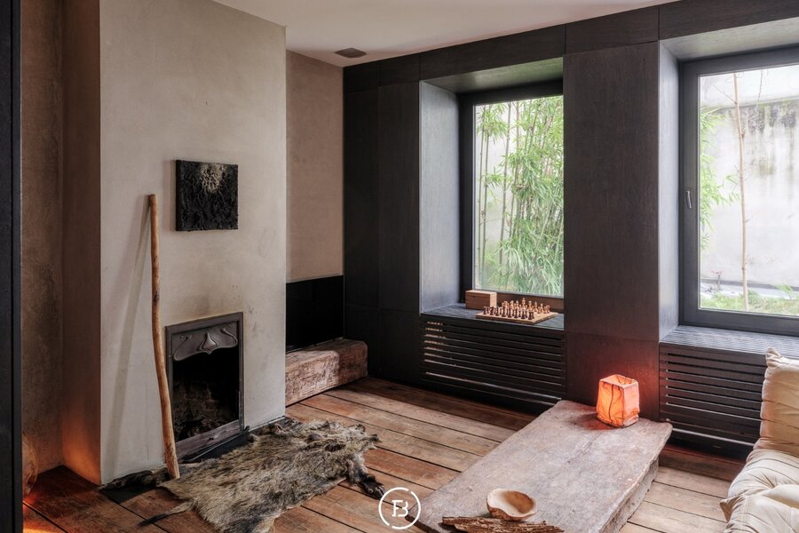 Het pand onderging recent een zorgvuldig uitgevoerde, gedeeltelijke renovatie, met interieurkeuzes geïnspireerd door de vormentaal en filosofie van Axel Vervoordt en Tatsuro Miki. Zorgvuldig geselecteerde materialen en accenten zorgen voor een hedendaagse, strakke afwerking met een warme, tijdloze uitstraling.