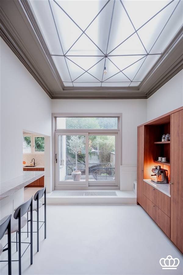 - Sinds 2023 werd de woning grondig gerenoveerd met behoud van authentieke elementen die het karakter en de allure van deze herenwoning benadrukken.