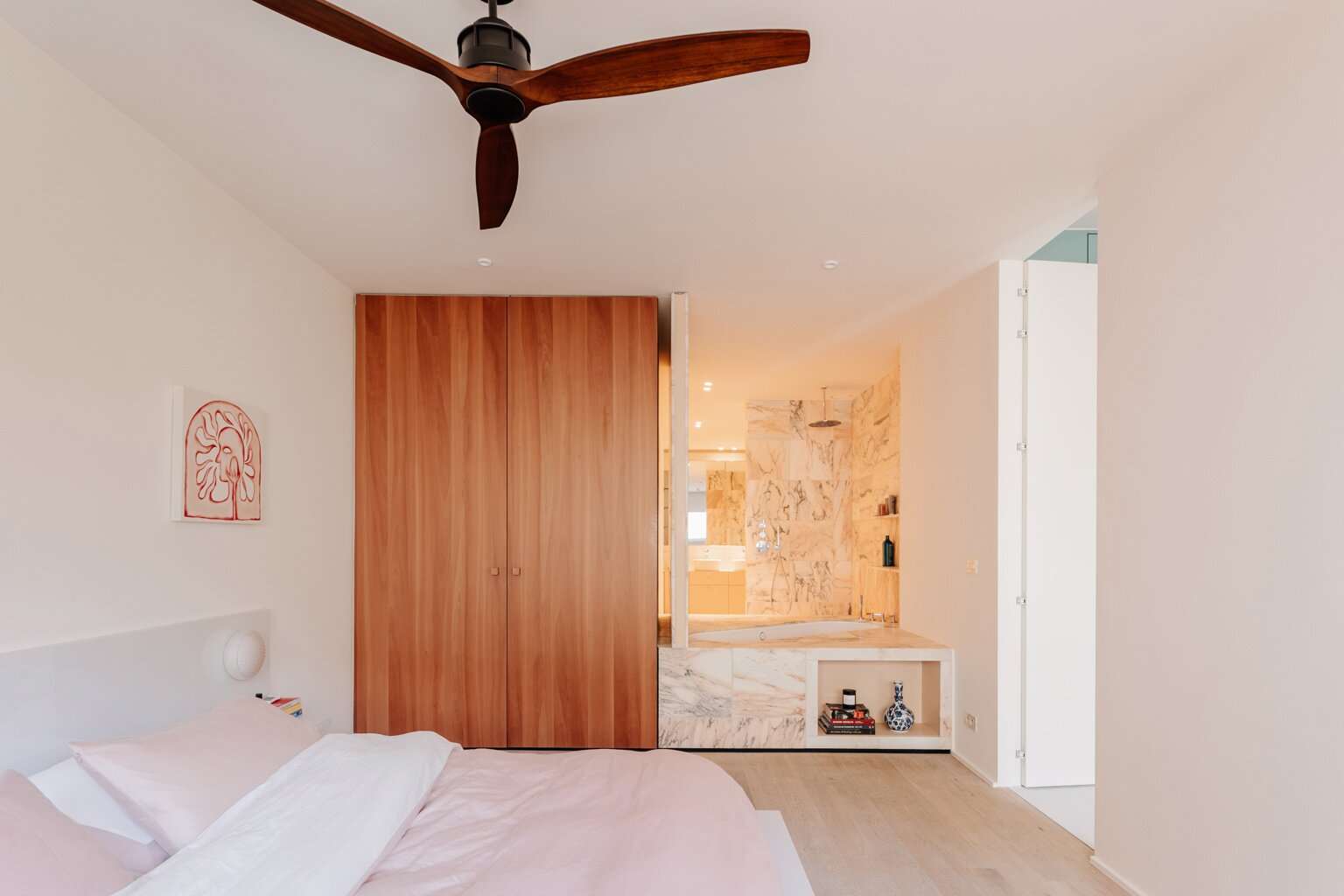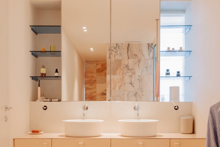 With two bedrooms and two bathrooms, you will enjoy optimal comfort and privacy here. Every element has been carefully designed to exude harmony and elegance, from the integrated lighting to the flowing lines of the custom-made furniture. This is high-end living: design, light and serenity in perfect balance.