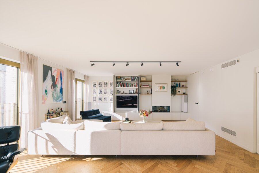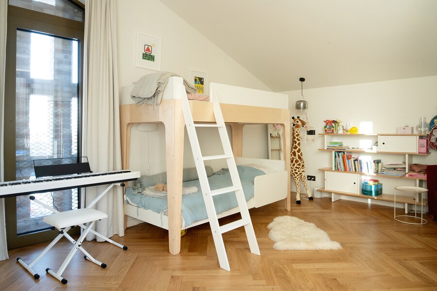 The 6th floor houses the cozy, secluded sleeping areas, with an abundance of natural light. The unique south-facing and fully private rooftop terrace is the perfect spot to relax without prying eyes or host summer parties. The master bedroom features a dressing room, private bathroom, and a ceiling height of over 5 meters: the perfect way to wake up with the beautiful morning sunlight. The 2nd and 3rd bedrooms are also very spacious, ideal for a home office, study, gym, children's room, or guest quarters.