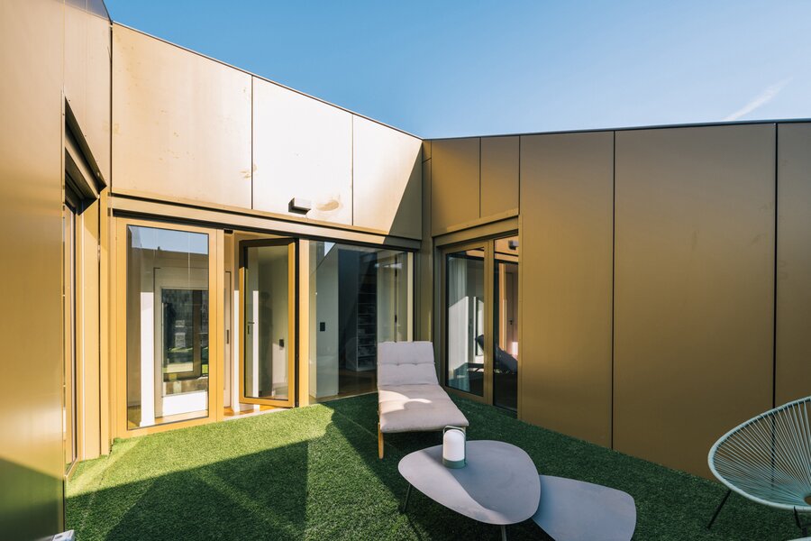 Two parking spaces with charging stations are available for sale downstairs at €50K each.