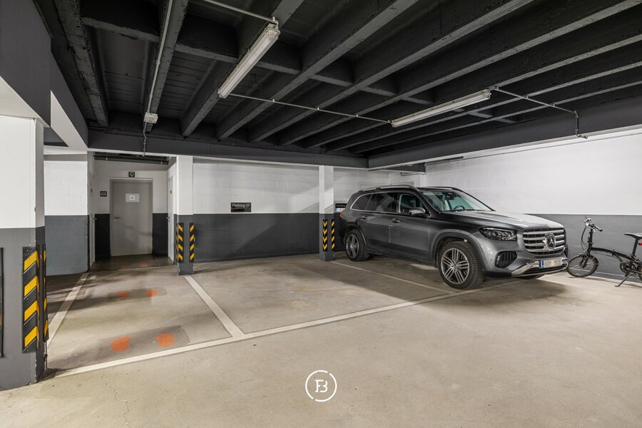 De leefruimte is royaal en helder, met voldoende plaats voor verschillende leefzones zonder aan intimiteit in te boeten. De open keuken sluit naadloos aan op het geheel en is afgewerkt in een strak, tijdloos ontwerp met kwalitatieve inbouwtoestellen. Er zijn twee praktische bergingen aanwezig.