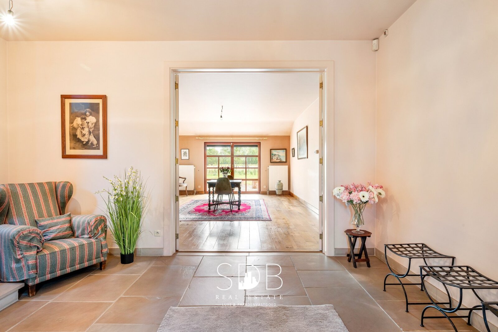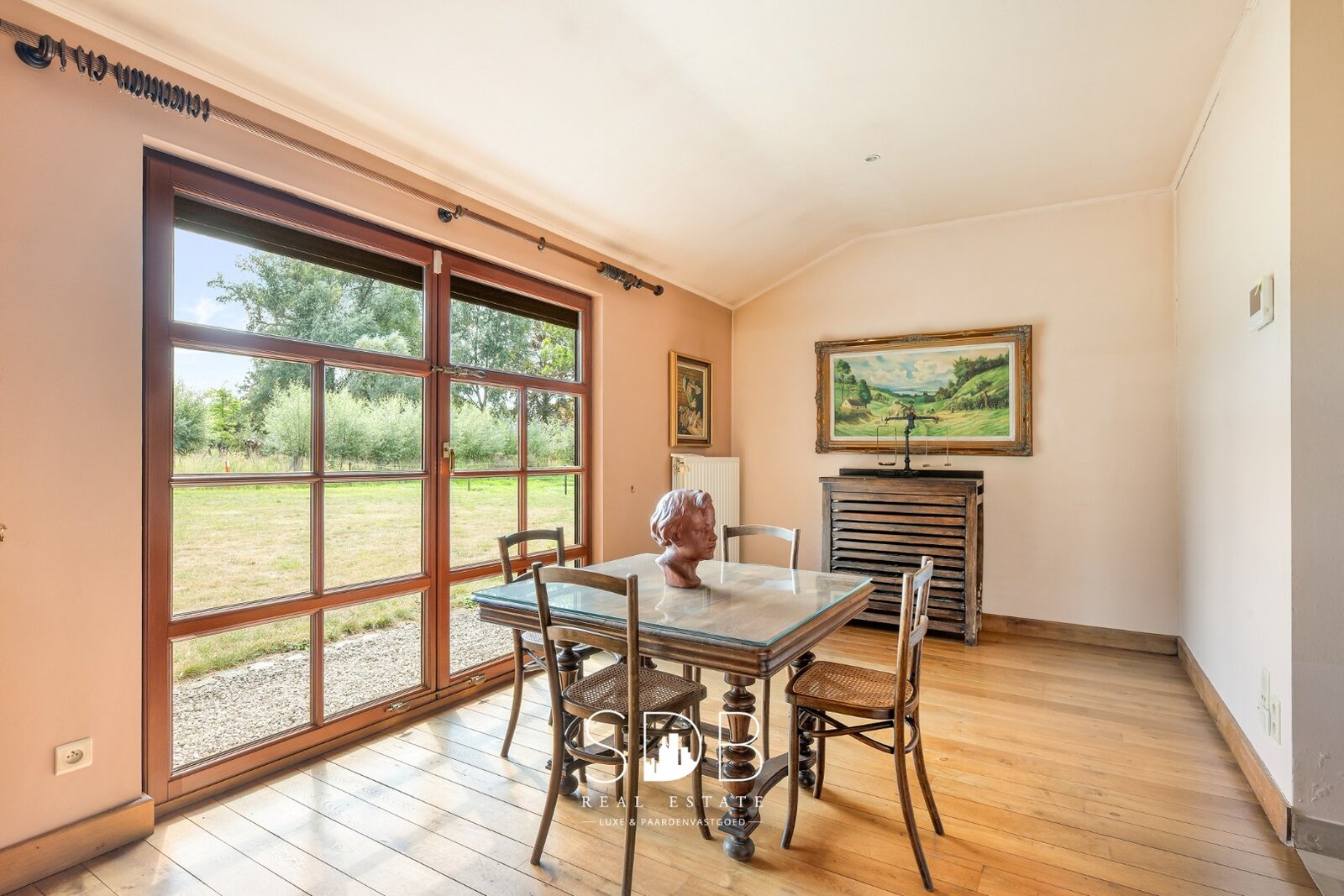 Deze gelijkvloerse woonruimtes bieden een mooi zicht op de tuin en het achterliggende groen, nl. de omliggende graslanden.