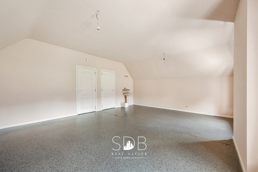 Eveneens bevindt zich op het gelijkvloers nog een ruime kamer, vrij in te vullen.