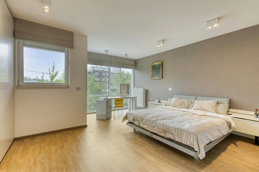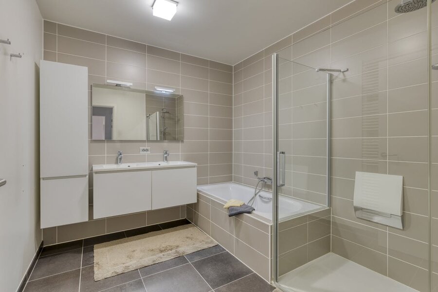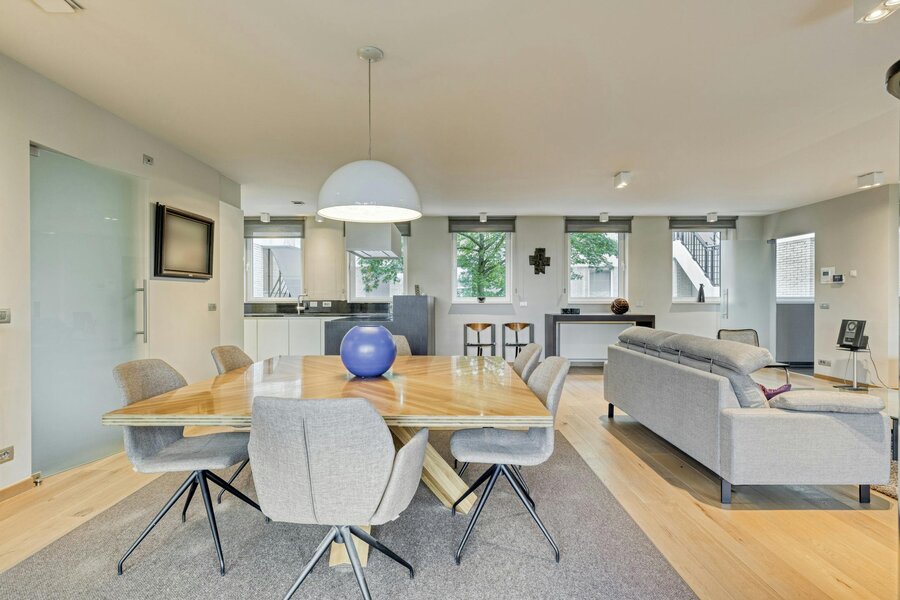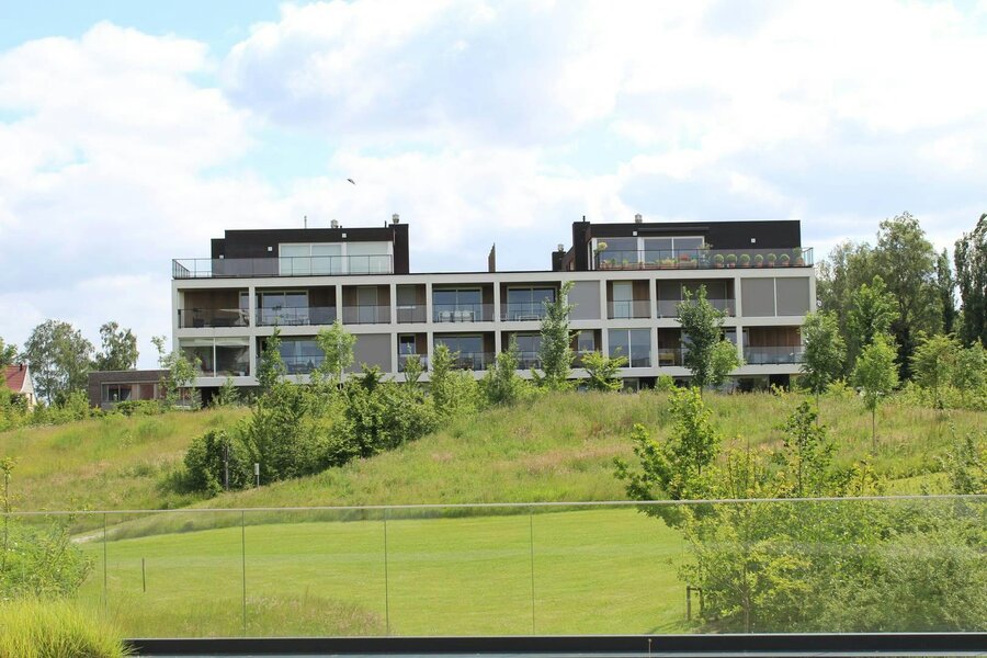 This luxurious apartment has 3 bedrooms. The apartment is located in a quiet residential area, halfway between Ghent and Bruges. The building has a sleek architecture, bright spaces and a finish in the best materials.