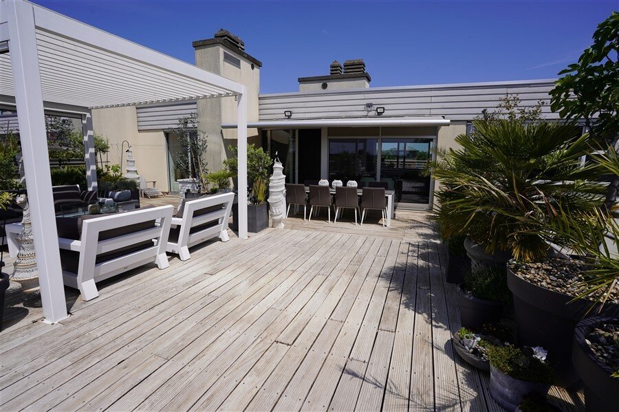 This stunning rooftop apartment of exceptional caliber combines generous volumes with refined finishes in a stylish whole