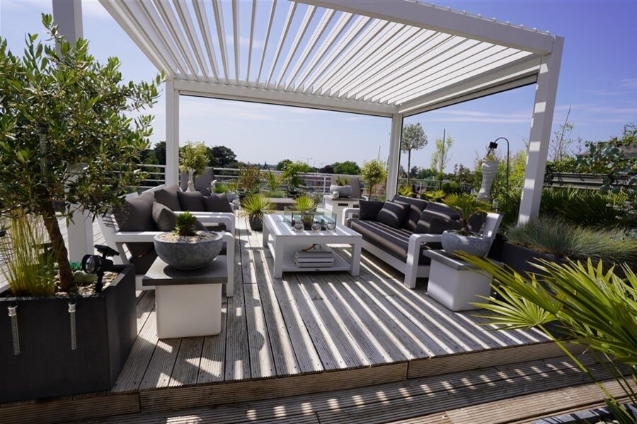 And then there is the terrace.The absolute showpiece is the south-facing terrace of no less than 100 m² - a sun-drenched outdoor space that effortlessly evokes the atmosphere of southern France. A place where you can unwind with a good book, have a long dinner with friends or simply enjoy the view and the moment.