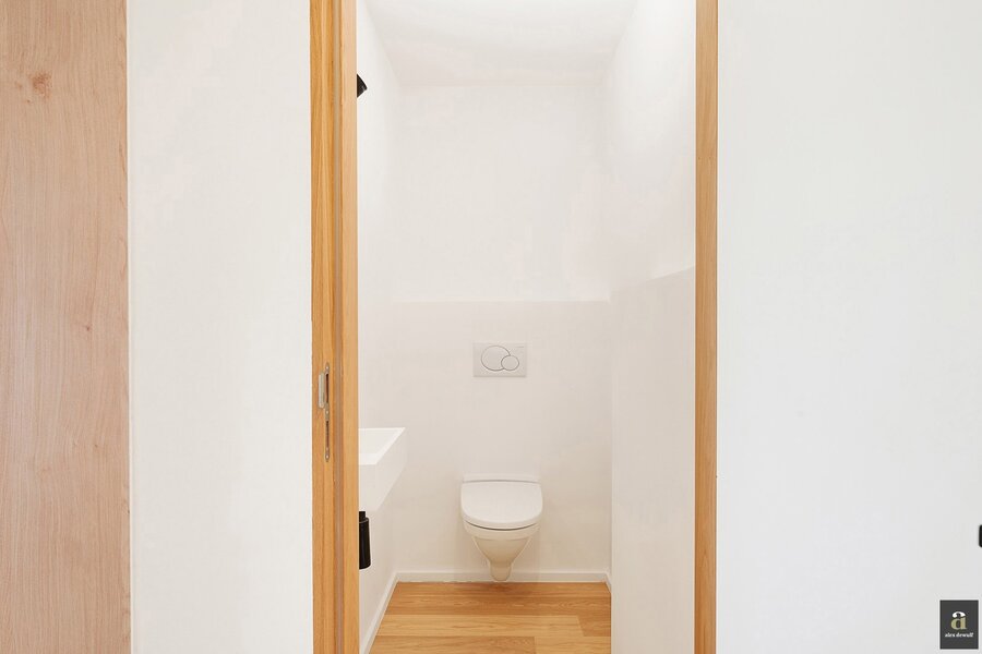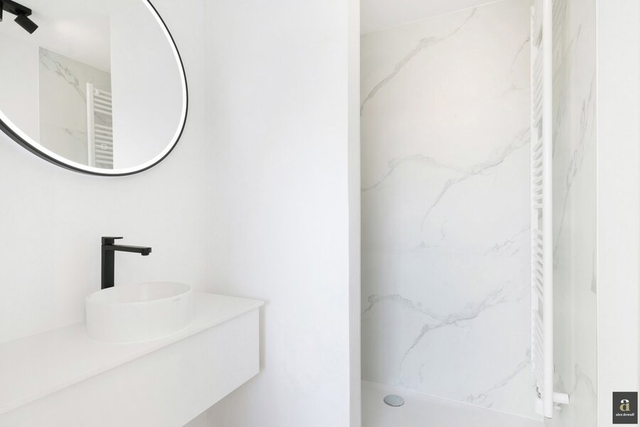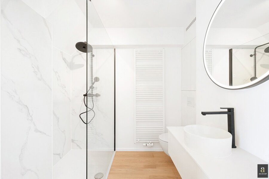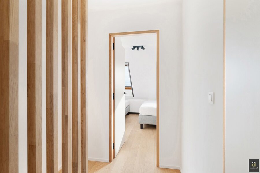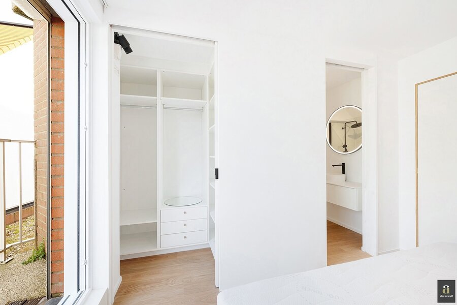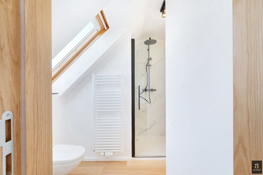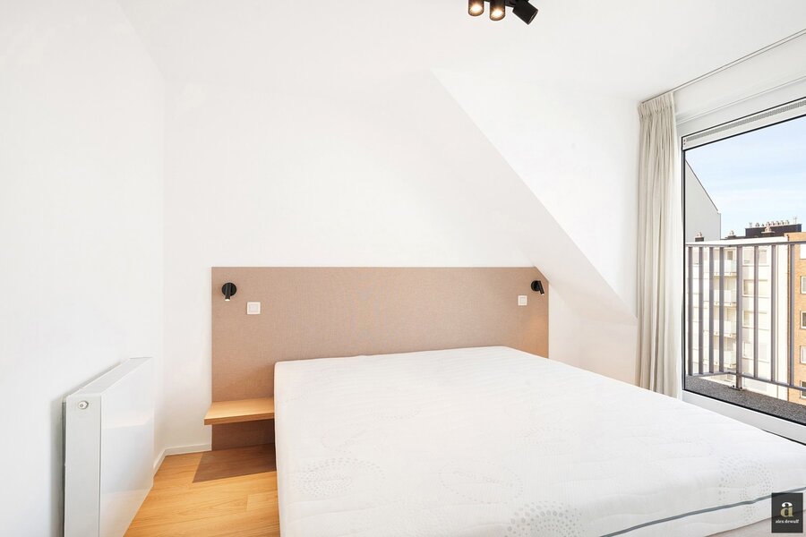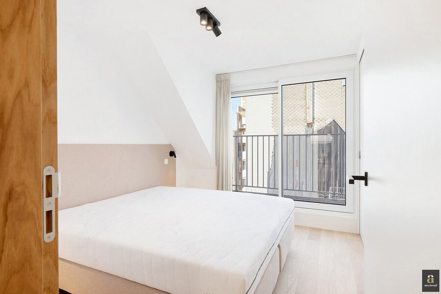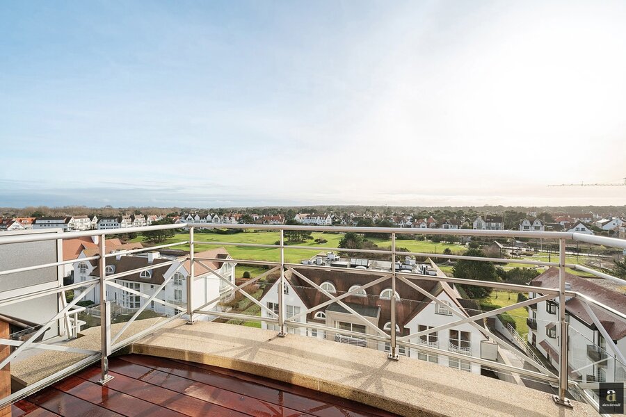 This beautifully renovated penthouse is located on the prestigious Kustlaan and combines luxurious living comfort with breathtaking views over Het Zoute. Upon entering, the eye is immediately drawn to the bright living area, where a fully equipped open-plan kitchen seamlessly connects to the lounge. The kitchen features a dishwasher, a combi oven and a spacious fridge with freezer compartment.