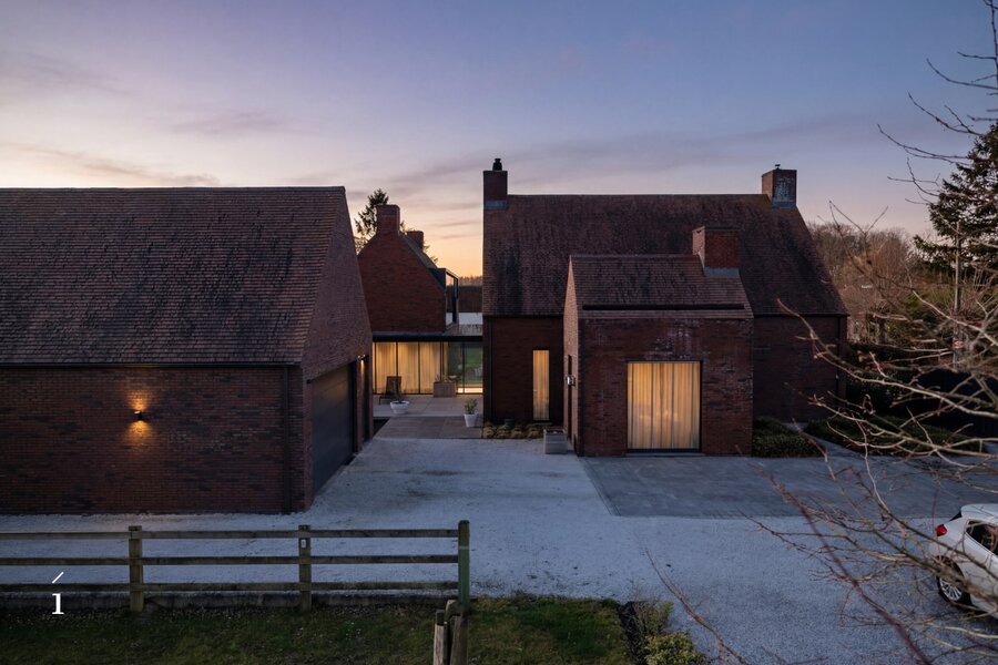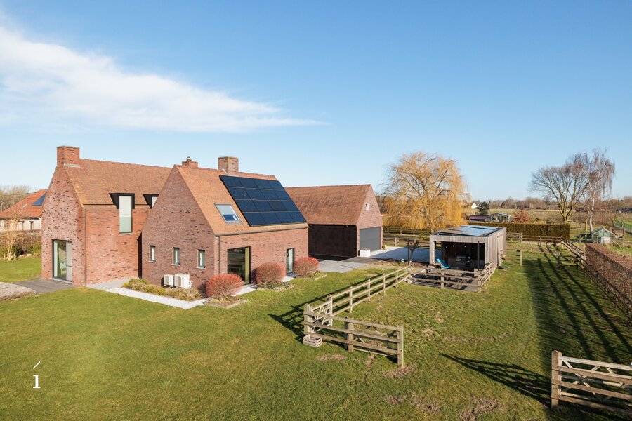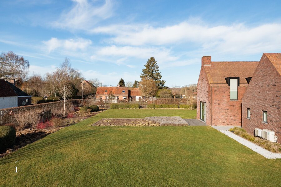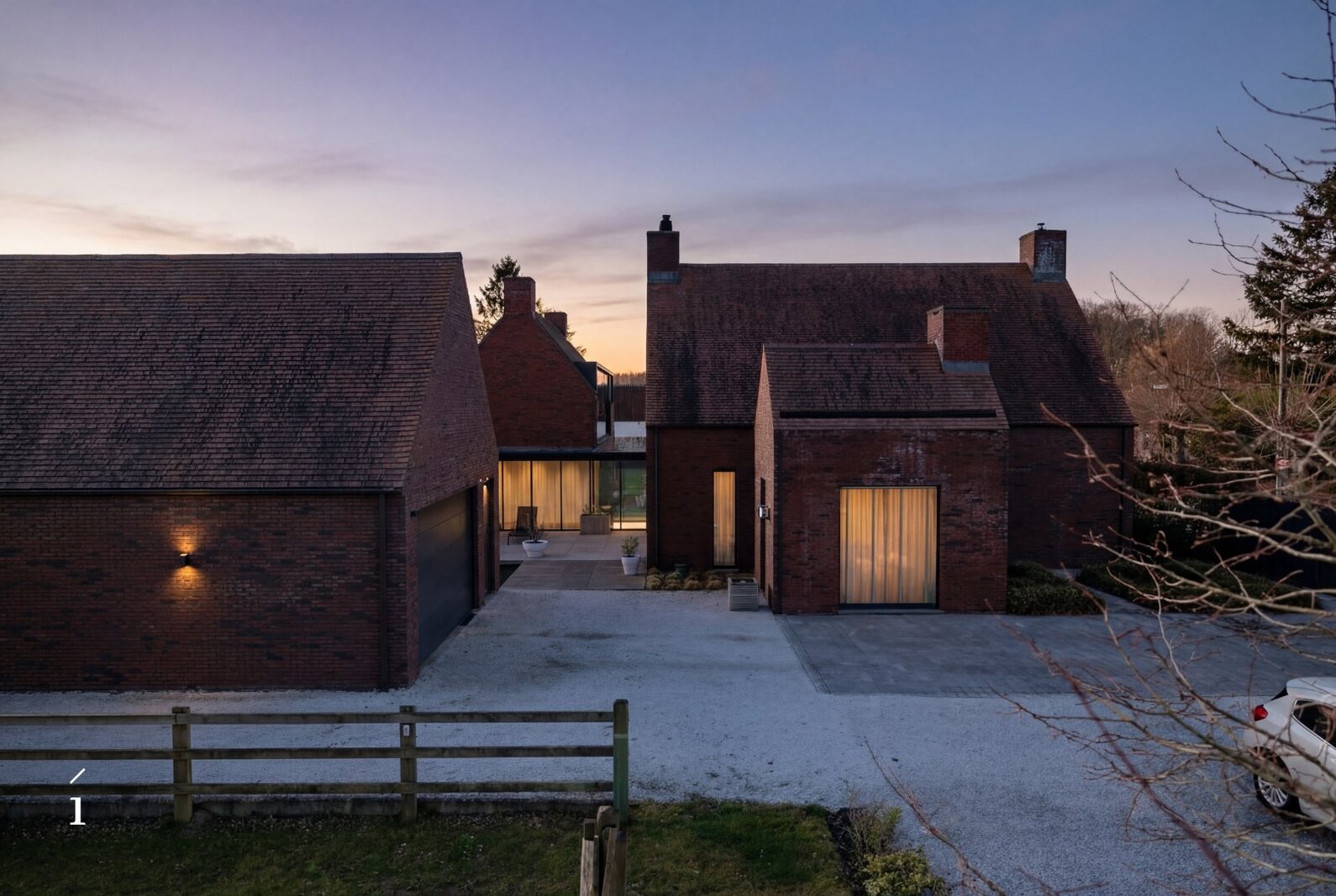 In 2013 werd deze vierkantshoeve volledig hernieuwd en herdoopt tot ‘Le Village’ een hedendaagse interpretatie van wonen in harmonie met landschap en architectuur. Gelegen in een autoluwe straat op een perceel van 4.030 m² en omgeven door weilanden en agrarisch gebied, geniet het domein van een uitzonderlijk gevoel van rust en privacy. Het geheel bestaat uit een hoofdgebouw van ca. 323 m², een bijgebouw van ca. 115 m², een ruime garage van ca. 84 m² en een zorgvuldig aangelegde tuin.