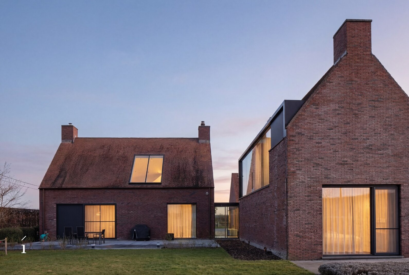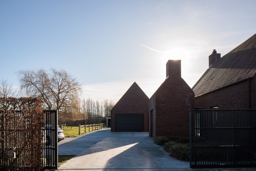 De vierkantshoeve ‘Le Village’ werd ontworpen door Delmulle Delmulle archi, een architectenbureau dat bekendstaat om zijn verfijnde benadering van hedendaagse architectuur binnen een historische context. Hun signatuur wordt gekenmerkt door een uitgepuurde vormentaal, doordachte materialisatie en een sterke focus op ruimtelijkheid en licht. Elk ontwerp vertrekt vanuit respect voor de omgeving, gecombineerd met een hedendaagse interpretatie die tijdloosheid en woonkwaliteit centraal stelt.