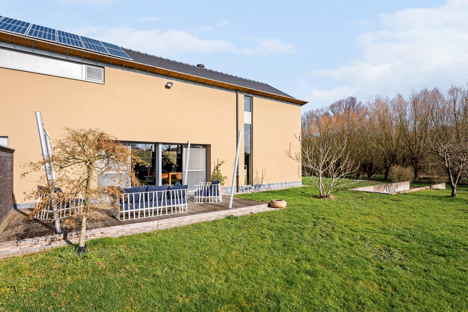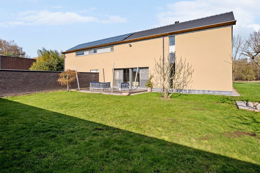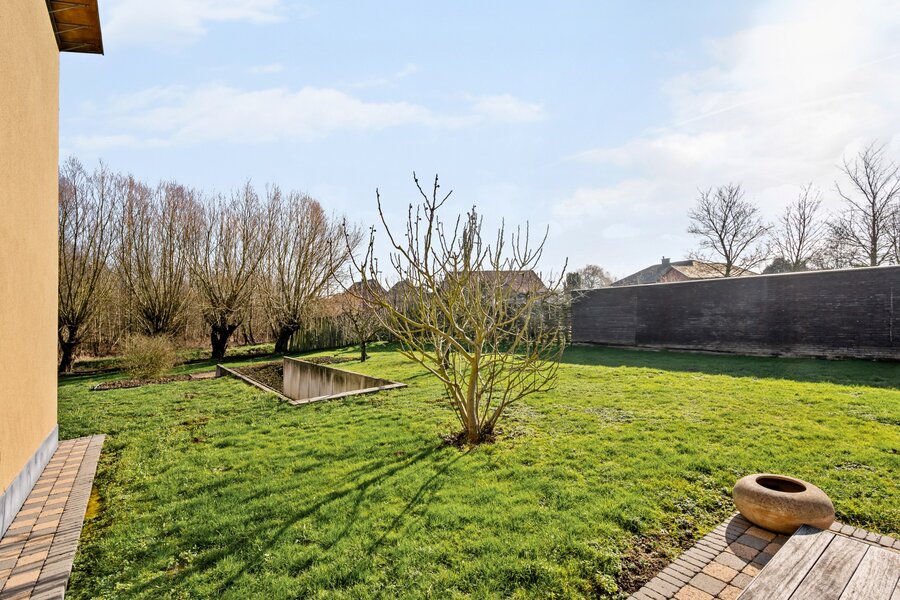 De ruime goed uitgeruste open keuken met prachtig zicht op de natuurlijke tuin en het omliggende groen. Hier kookt en leeft u met de seizoenen als decor. Open leefruimte met grote raampartijen en aan twee zijden zicht op de tuin en de terrassen, wat zorgt voor een uitzonderlijke connectie tussen binnen en buiten.Vooraan geniet u van een ommuurde, beschutte zone, ideaal voor extra privacy en geborgenheid. Praktische wasplaats/berging met voldoende opbergruimte.
