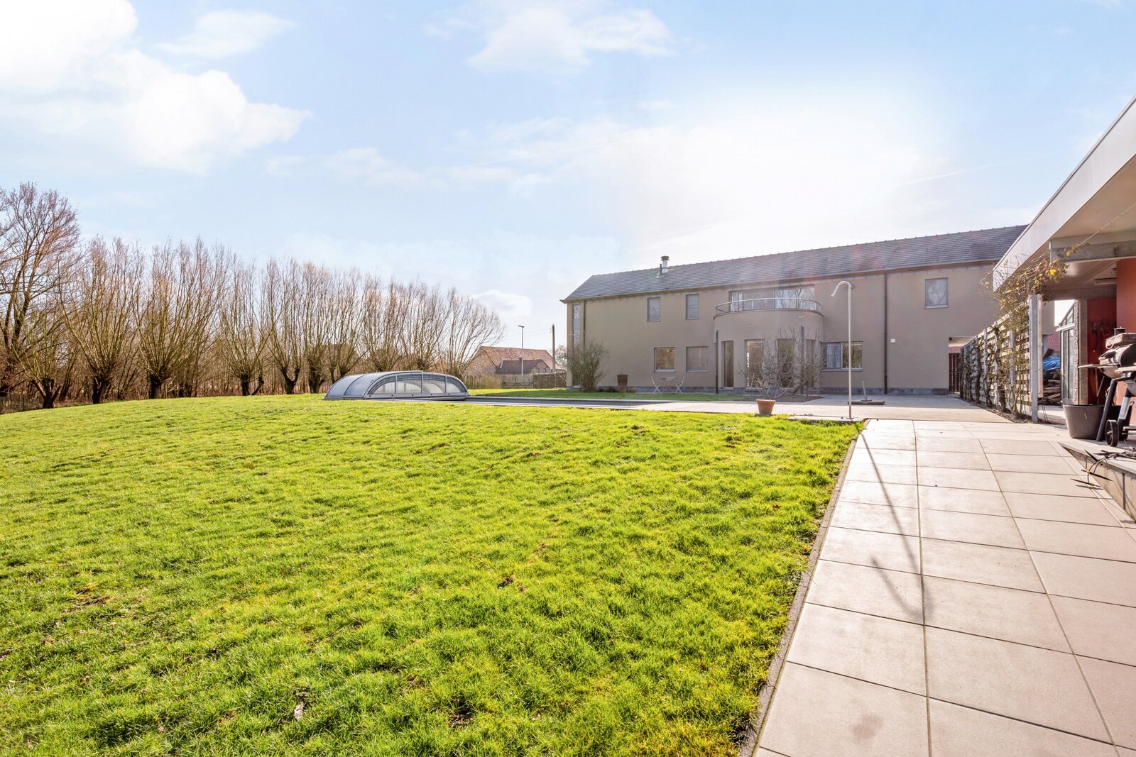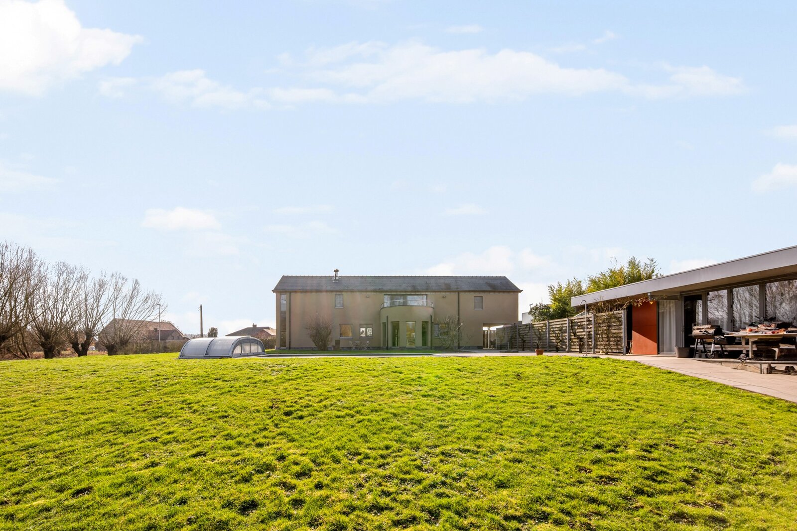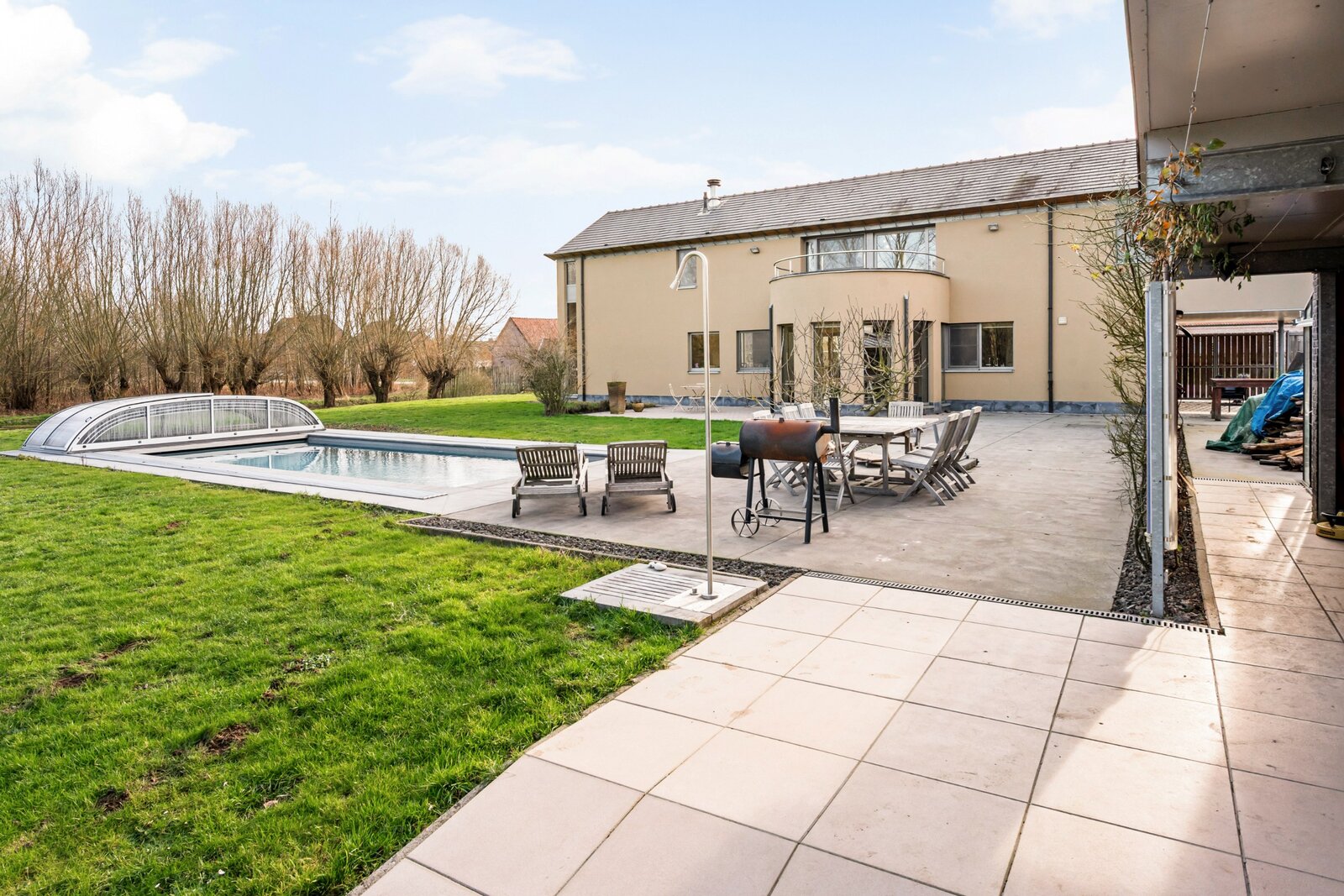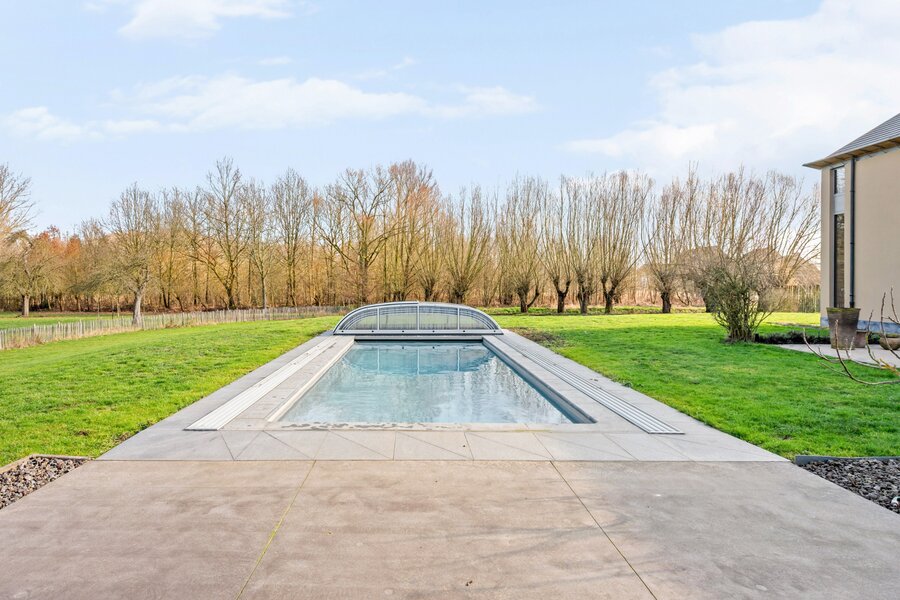 Het verwarmde zwembad met overkapping maakt het plaatje compleet. In alle seizoenen geniet u hier van ontspanning, rust en comfort, volledig in harmonie met de natuur.