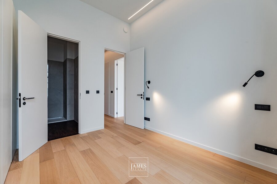 The night area comprises two bedrooms and two bathrooms, including a shower room and a full bathroom, ensuring both comfort and functionality.