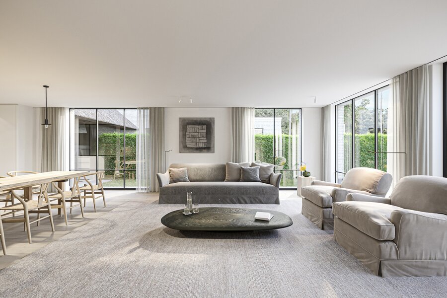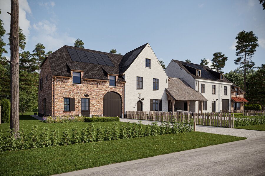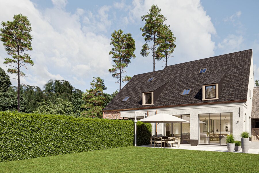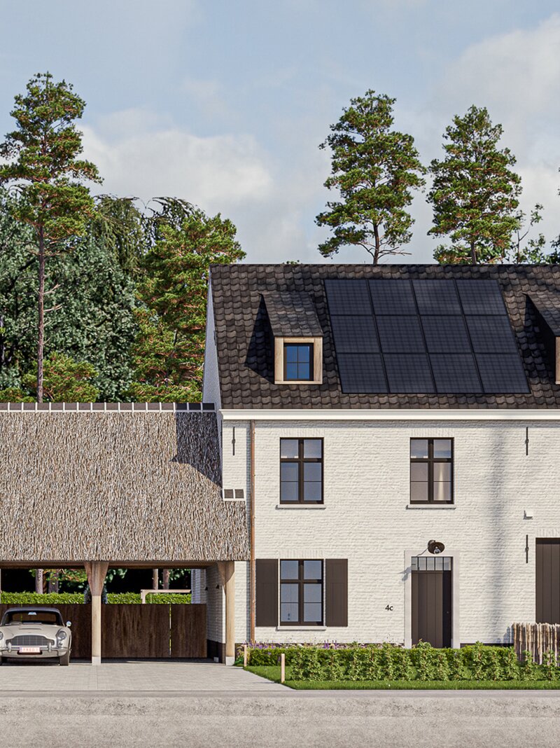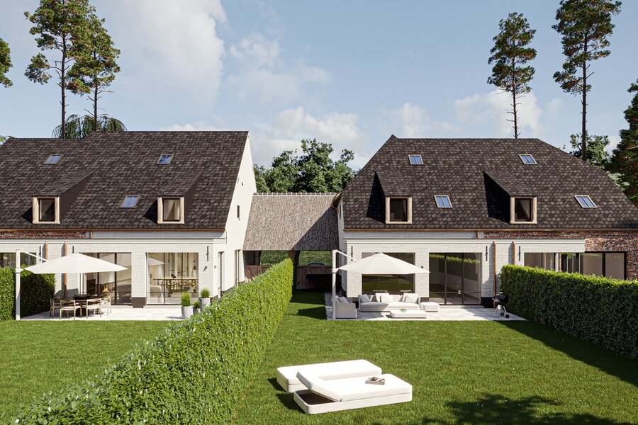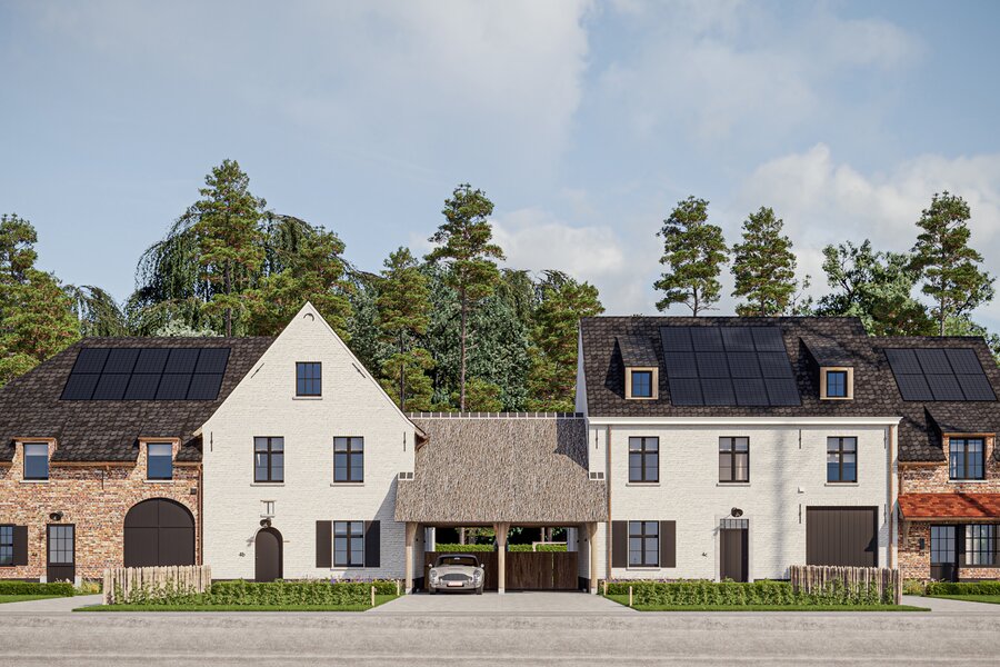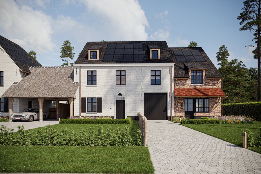 The prestigious “FOUR” project consists of four opulent semi-detached homes surrounded by an idyllic, rustic landscape. Each home offers a luxurious lifestyle with three spacious bedrooms, two elegant bathrooms and a majestic fixed staircase that provides access to a lush, expansive attic. The villas are located in a quiet, dead-end street - Viergemede - in picturesque Destelbergen, amidst a wooded neighborhood on the edge of the enchanting Bommels.