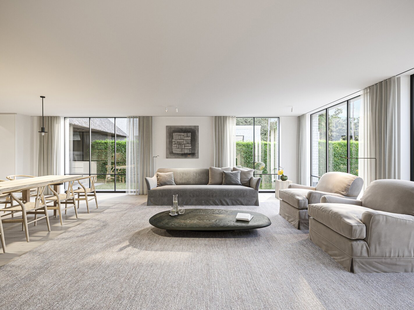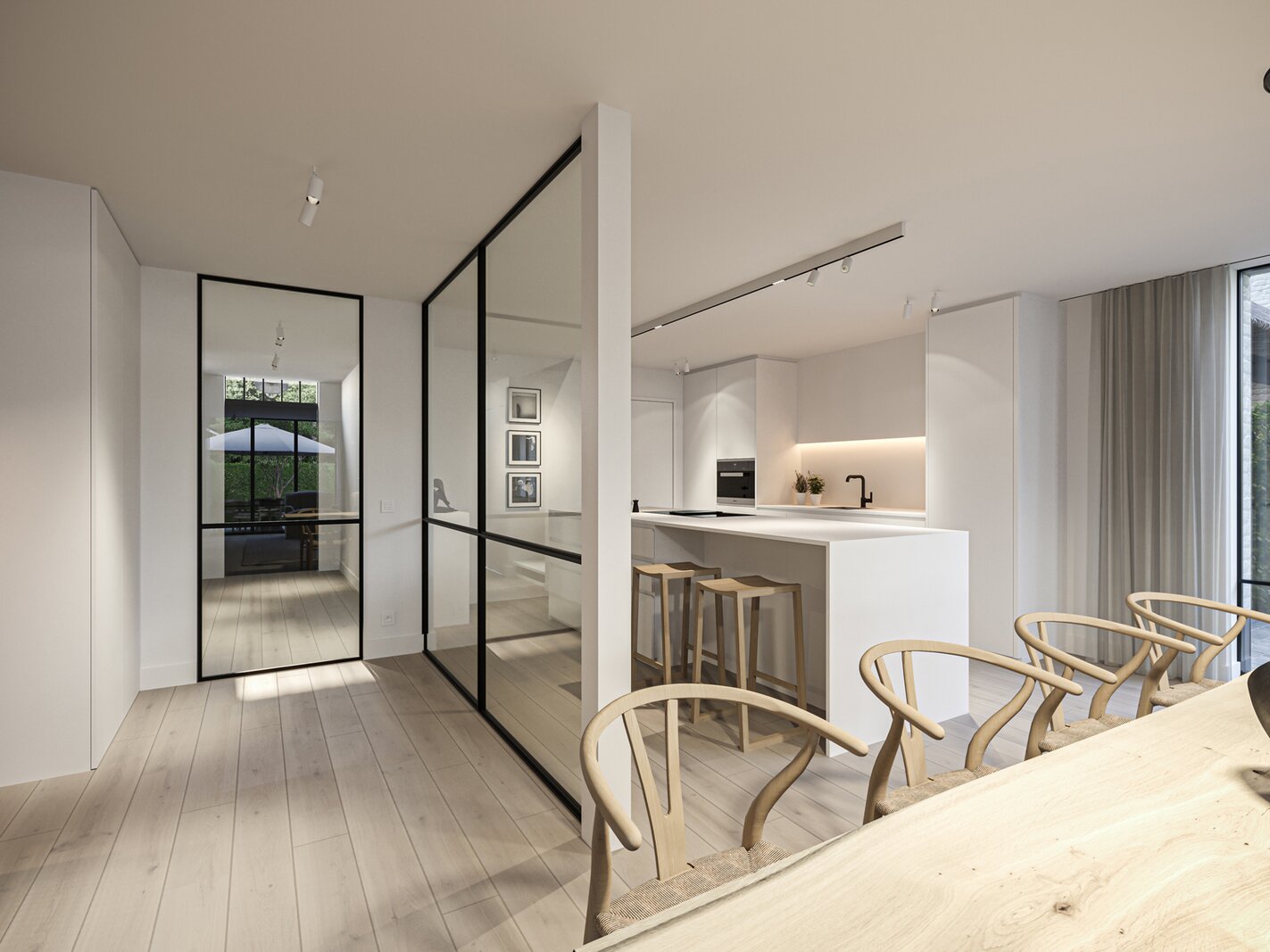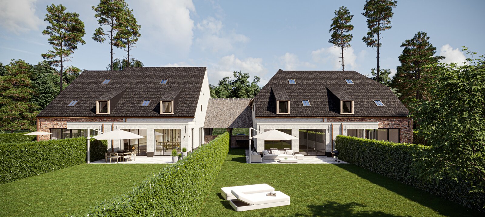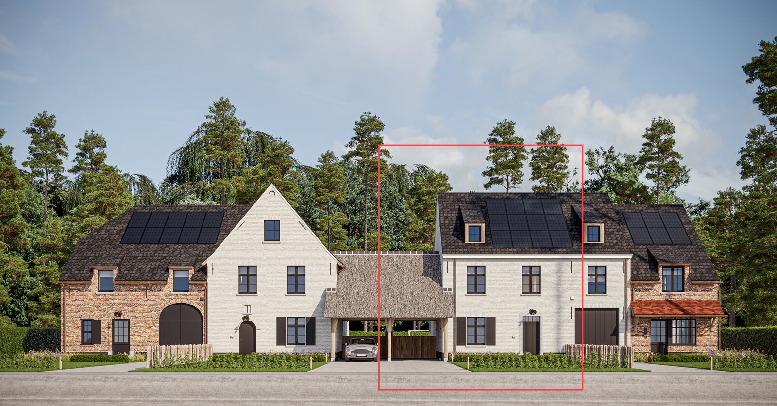 The prestigious “FOUR” project consists of four opulent semi-detached homes surrounded by an idyllic, rustic landscape. Each home offers a luxurious lifestyle with three spacious bedrooms, two elegant bathrooms and a majestic fixed staircase that provides access to a lush, expansive attic. The villas are located in a quiet, dead-end street - Viergemede - in picturesque Destelbergen, amidst a wooded neighborhood on the edge of the enchanting Bommels.