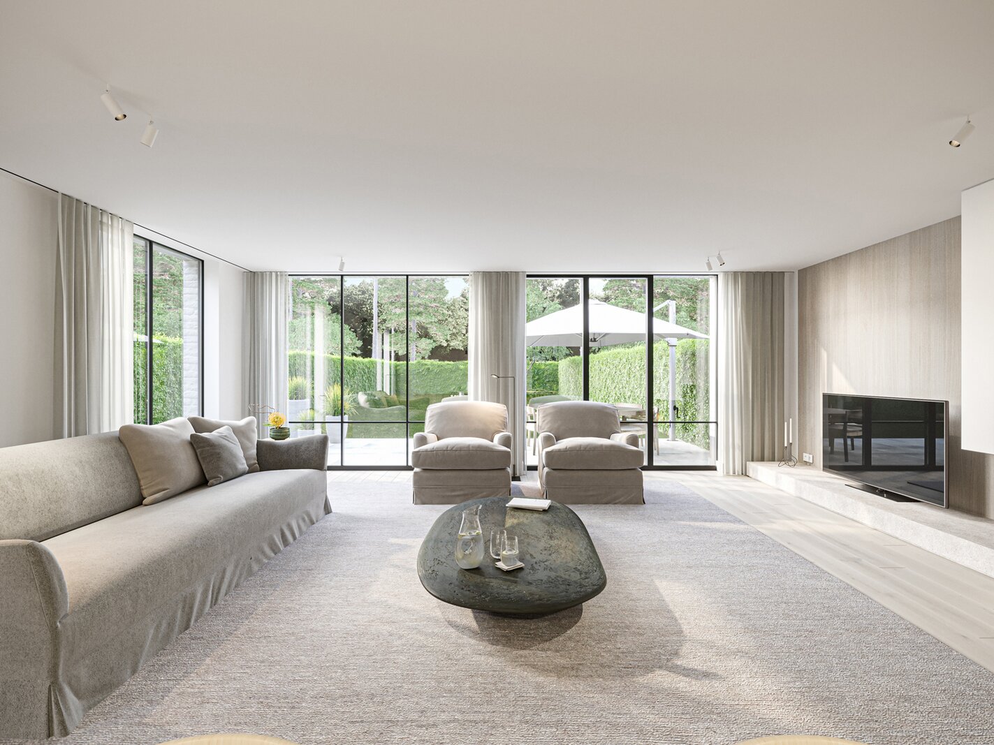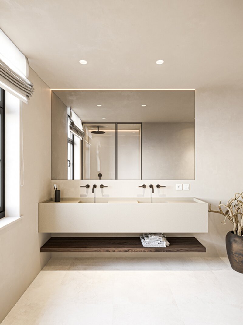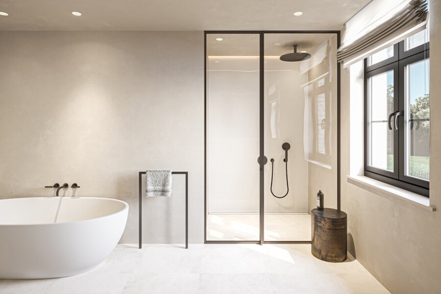 Designed with a classic and timeless aesthetic, the four homes combine prestige with the highest standards of sustainability and energy efficiency. They represent a true showpiece in terms of sustainable construction, with an exceptional energy performance (less than 20). Each villa is equipped with a geothermal heat pump combined with underfloor heating for an extremely comfortable and environmentally friendly living environment. In addition, each villa is equipped with individual solar panels, which not only optimizes energy performance, but also contributes to the sustainability of the whole.