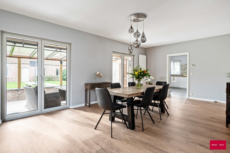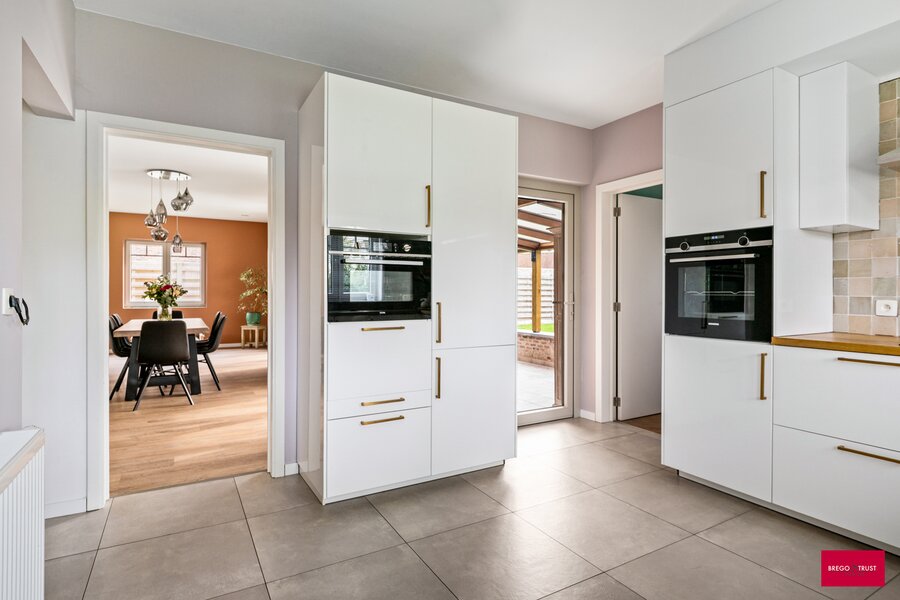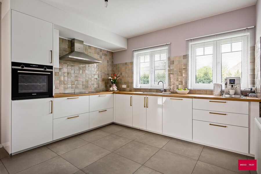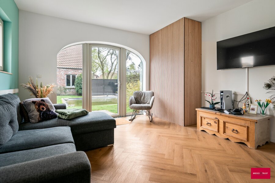 De lichtrijke leefruimte vormt samen met de ruime volledig geïnstalleerde keuken het hart van de woning. Dankzij de grondige renovatie geniet u hier van hedendaags wooncomfort zonder zorgen.
