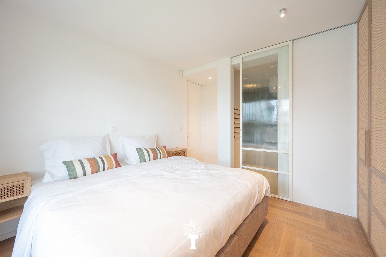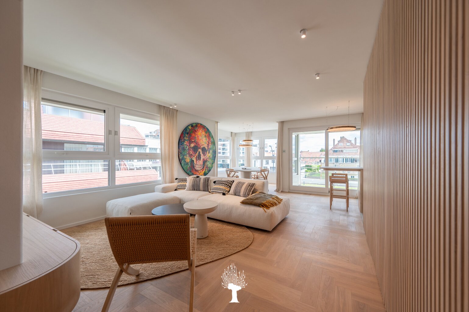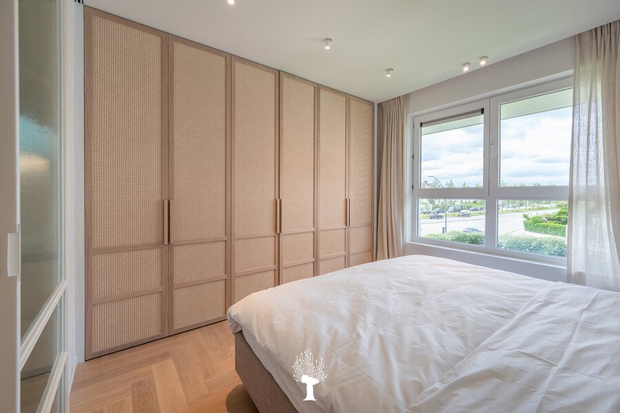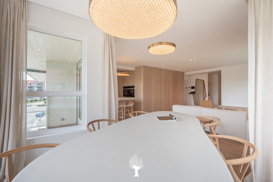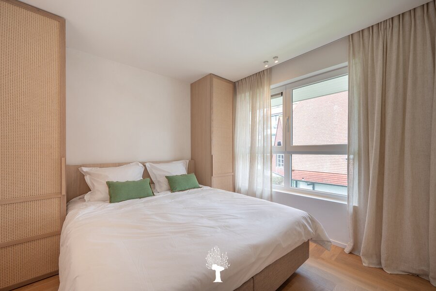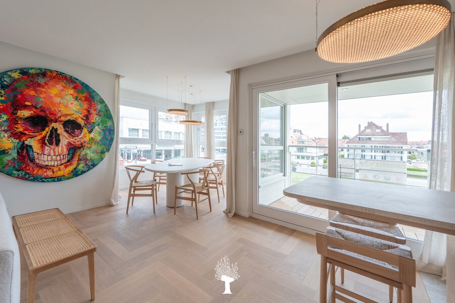 Prachtig vernieuwd hoekappartement met ruime zonneterras in een kleine villaresidentie in het hartje van het Albertstrand. Het strand op slechts 100 m. Samenstelling: inkomhall met ruime vestiaire en wc. Ruime woon- en eetkamer openend op zonneterras met mooi uitzicht op de Canadasquare en de omliggende villa's. Open, volledig geëquipeerde keuken: microgolfoven, inbouwoven, warmhoudlade, vaatwasmachine en wijnkoelkast. Bergruimte met aansluiting voor wasmachine en droogkast. Master bedroom met eigen badkamer en ingemaakte kasten.2 ruime slaapkamers met praktische douchekamer. Privé kelder en gemeenschappelijk fietslokaal. Mogelijk tot aankoop van dubbele garagebox in de residentie. Zeer luxueuze afwerking. Topmaterialen! Uitzonderlijke aanbieding: Zichten, terras en zon! Uniek!