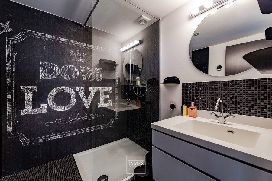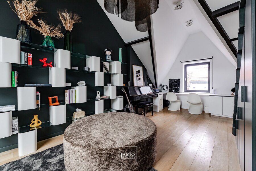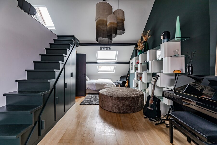 The top floor is entirely dedicated to a large bedroom with mezzanine, complemented by a third shower room.