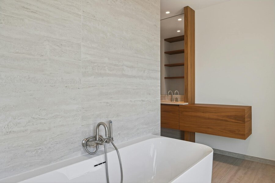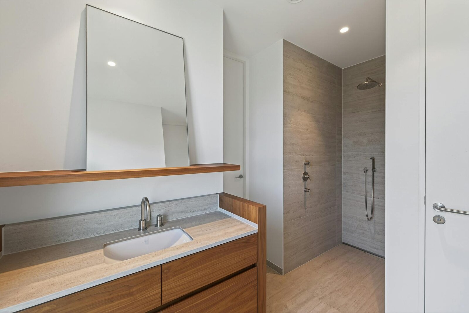 Thanks to the surrounding terraces (116 m²), you can enjoy breathtaking views from every angle. The elevator takes you directly and privately to your home. The layout is masterful: a spacious living room with a gas fireplace, a high-end kitchen with pantry, a multipurpose room and three spacious bedrooms. The master suite has its own dressing and bathroom, while the other rooms share a second bathroom.
