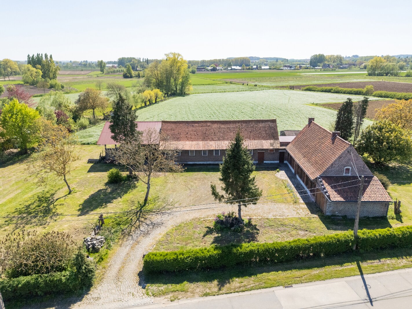 Deze hoeve, gelegen in de Galgenstraat 16 te Gavere, bevindt zich op een perceel van 1,65 hectare en biedt met haar straatbreedte van 106,5 meter een uitzonderlijk potentieel. De eigendom geniet van een rustige ligging en is bovendien centraal gelegen tussen Oudenaarde en Gent. Dankzij de vlotte verbindingen via de N60 en de E17 is de bereikbaarheid uitstekend.