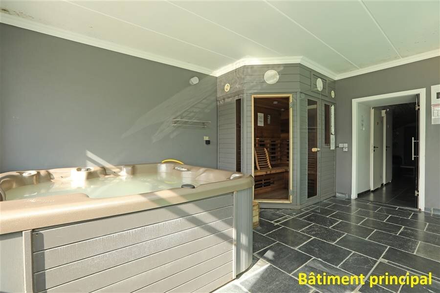 Het hoofdgebouw heeft 4 niveaus. Beneden niveau: kleine salon in een gewelfde kelder, verwarmd zwembad binnen, infrarode sauna, jacuzzi, terras.