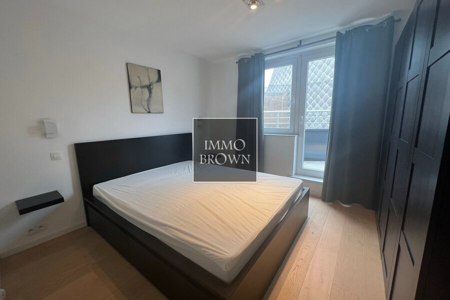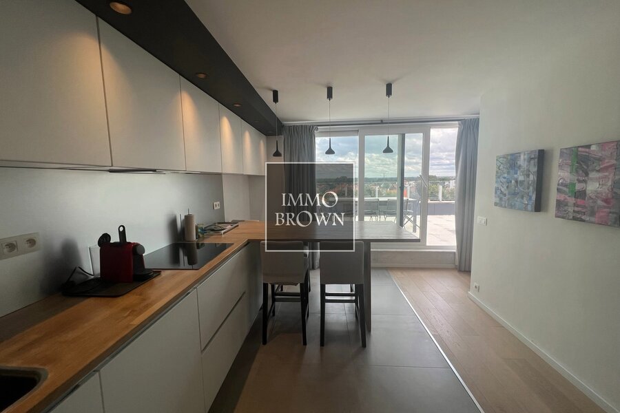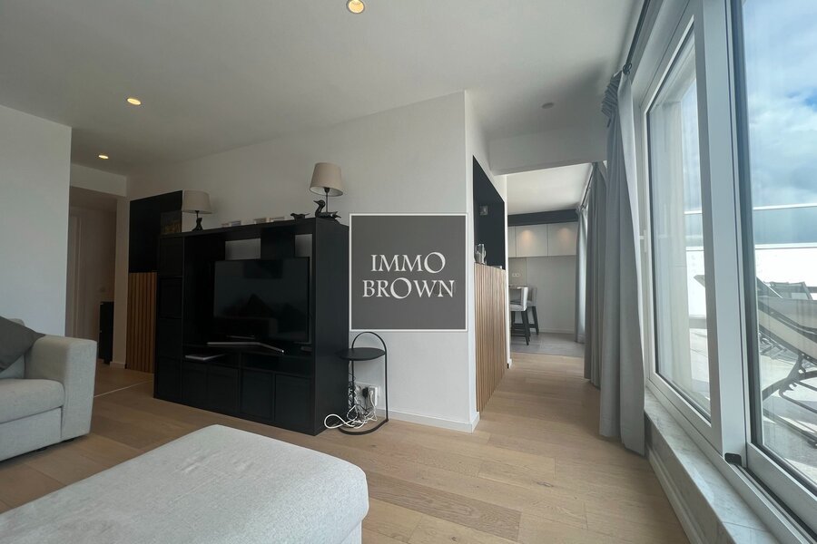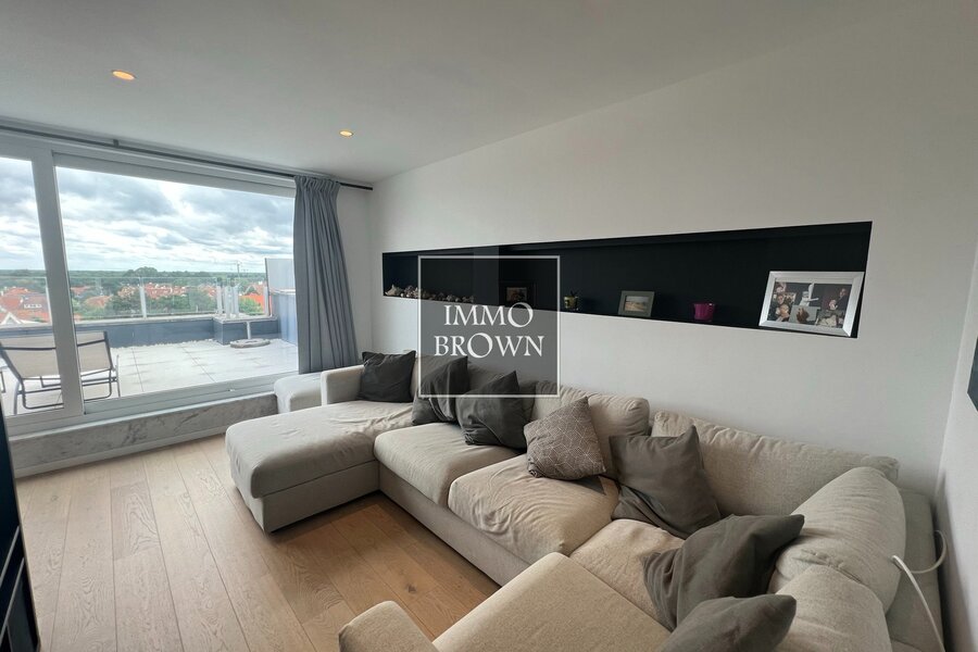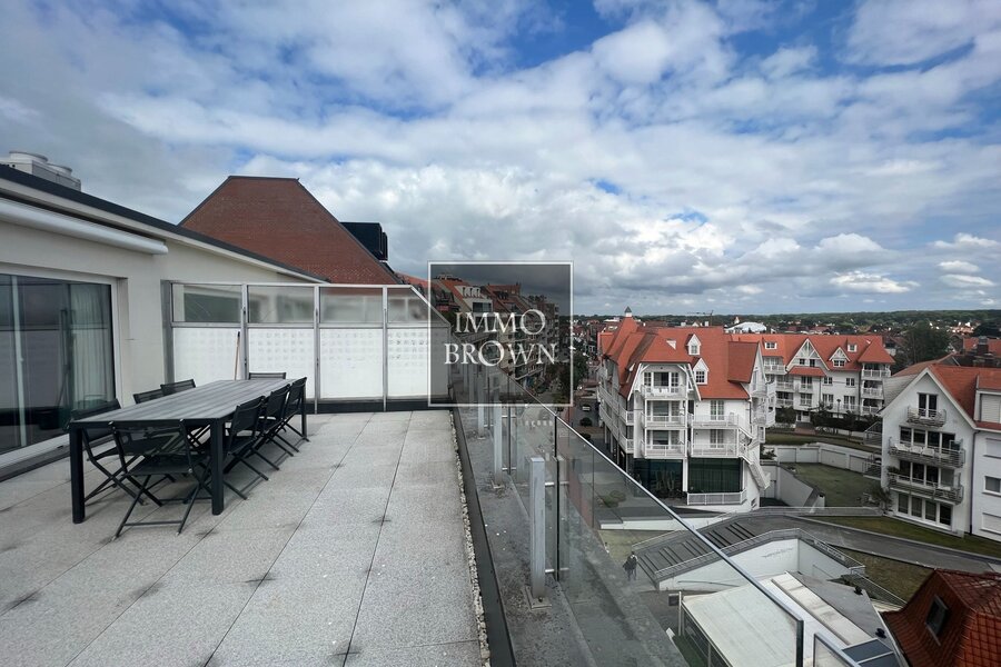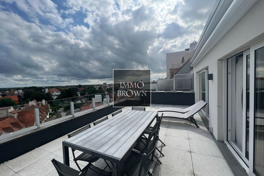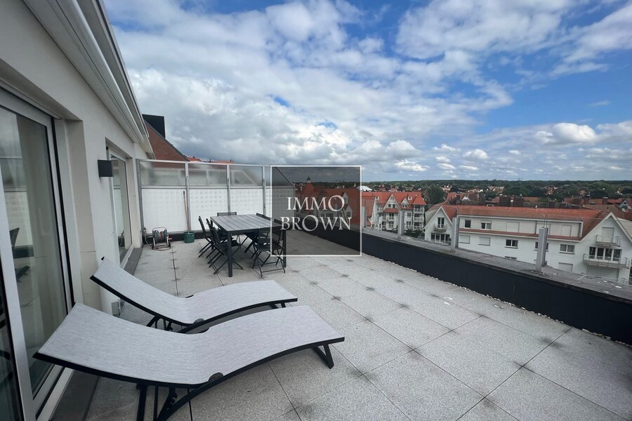 Furnished penthouse with spacious sun terrace overlooking the villas of the Zoute, ideally located on the Kustlaan, just a few steps from the beach and shops.