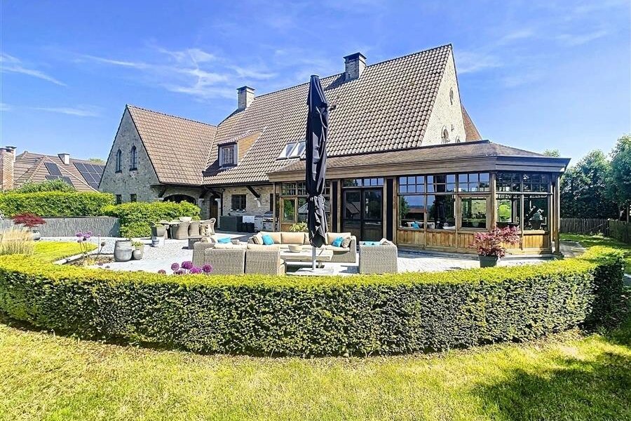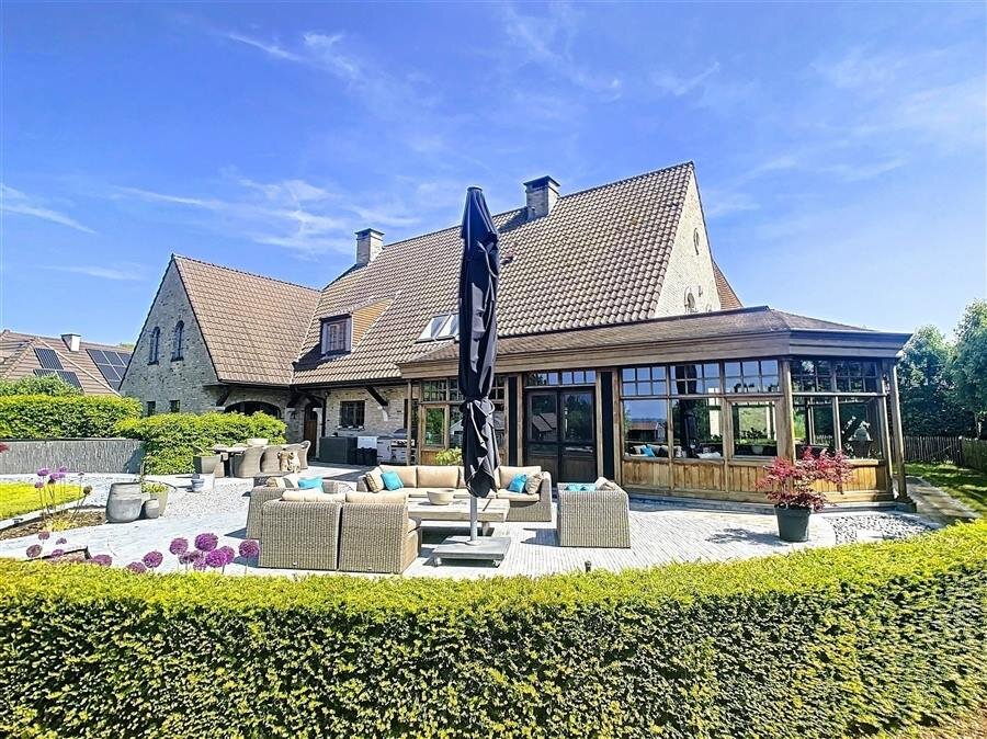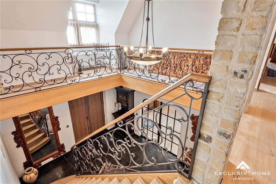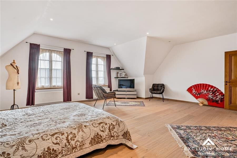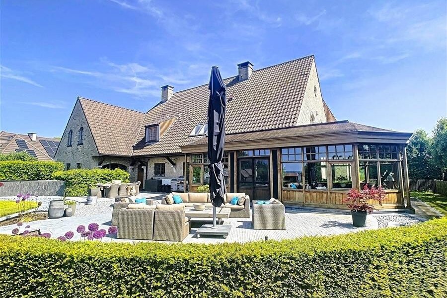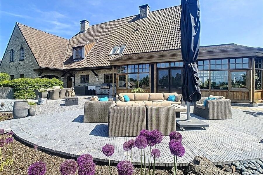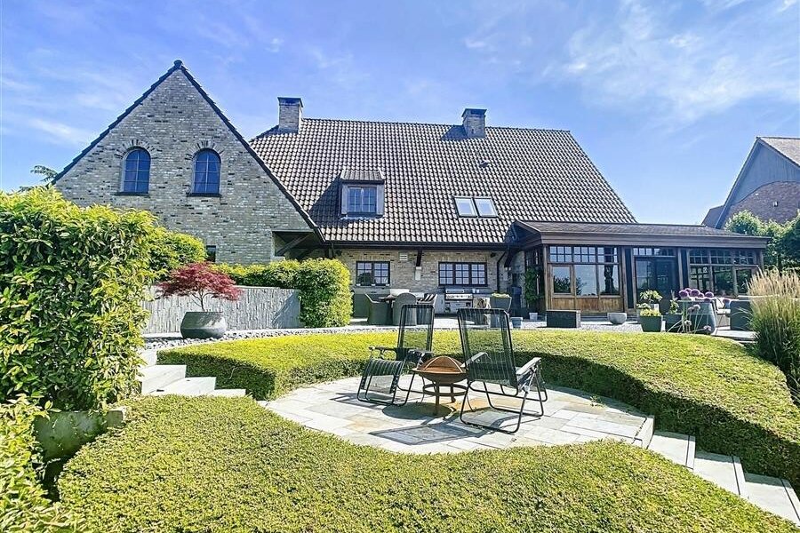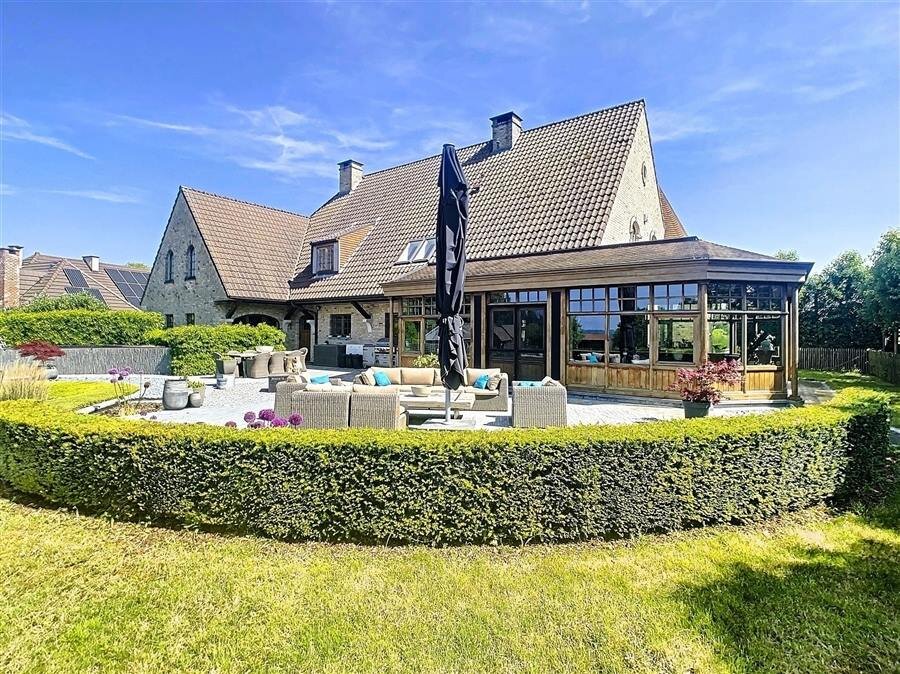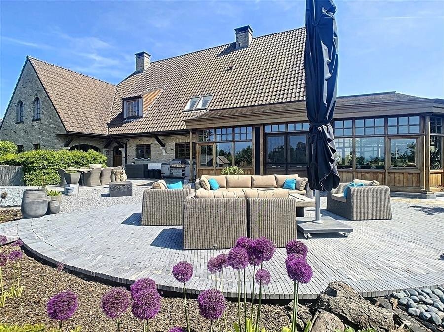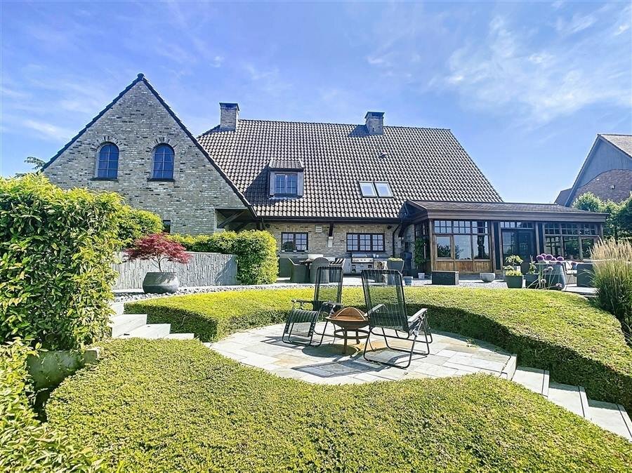 This idyllic mansion has an exceptional location on top of a crest overviewing part of the Pajottenland as well as the Flemish Ardennes. This impressive villa has been erected on a hilly parcel of private land of about 78 ares and is surrounded on the back side by a natural environment with natural fields, forests and greenery.
