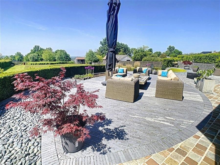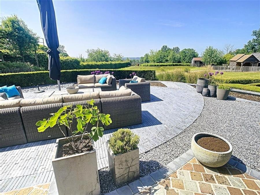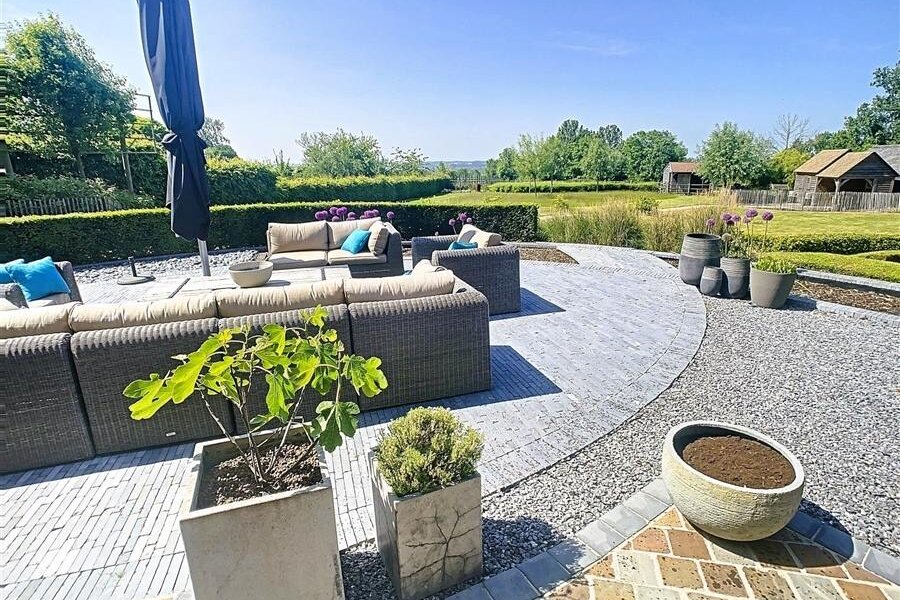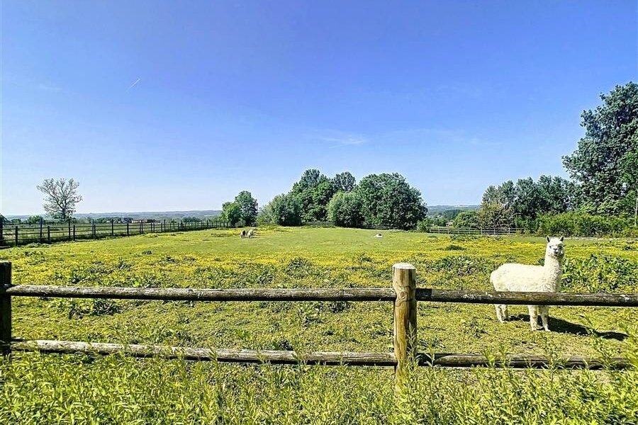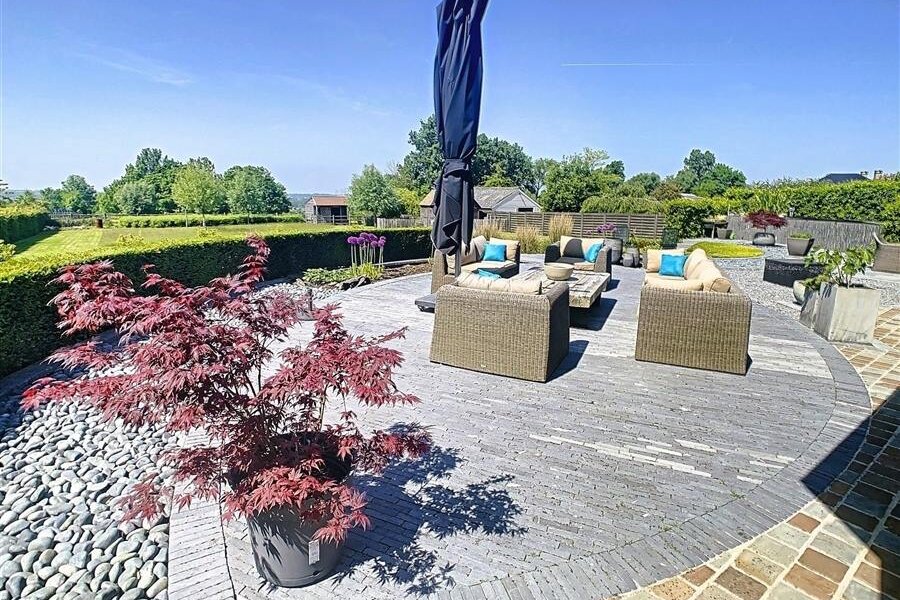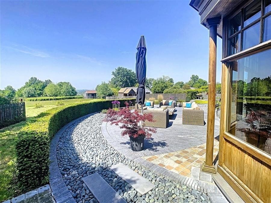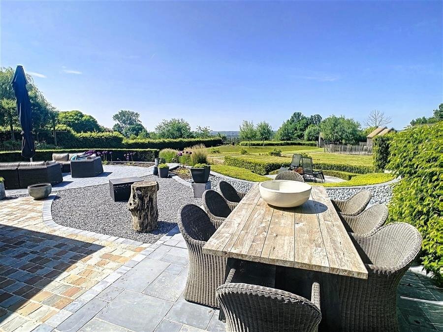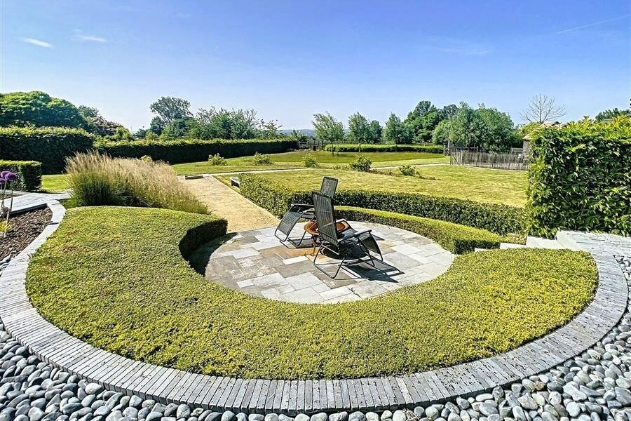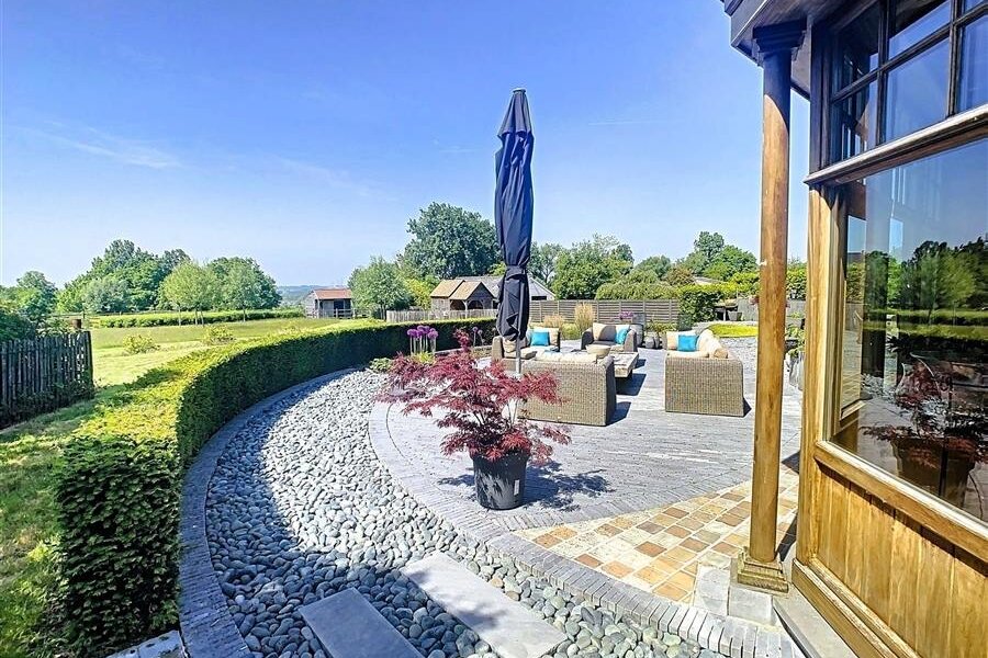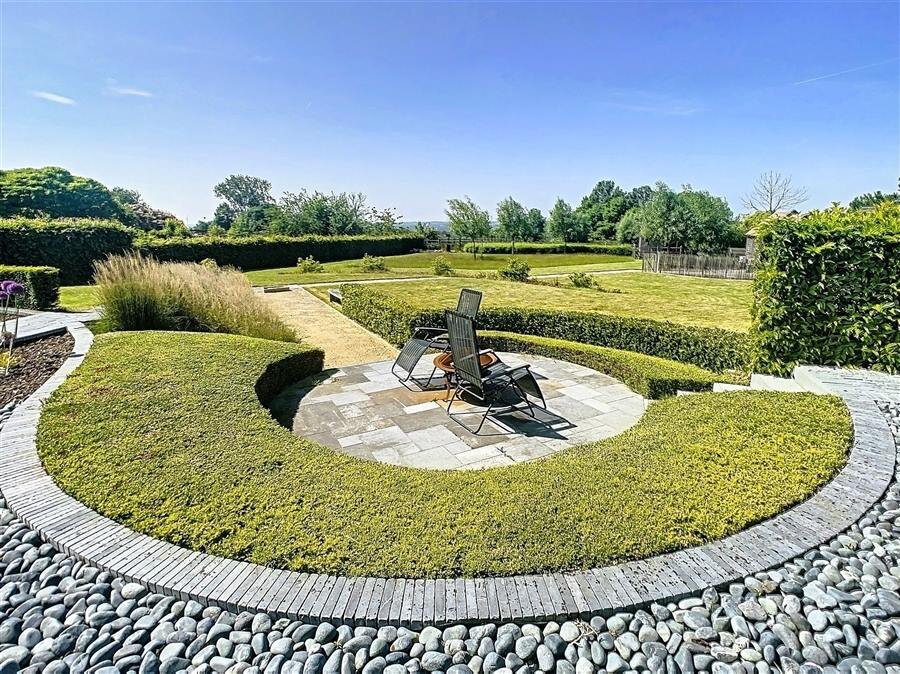 The cosy living rooms and kitchen have a permanent view of the surrounding garden and valley. The lovely garden and adjoining fields exude an atmosphere of peace and quiet and rural charm across the entire domain. The enclosed garden with cosy terraces invites you to relax and unwind.