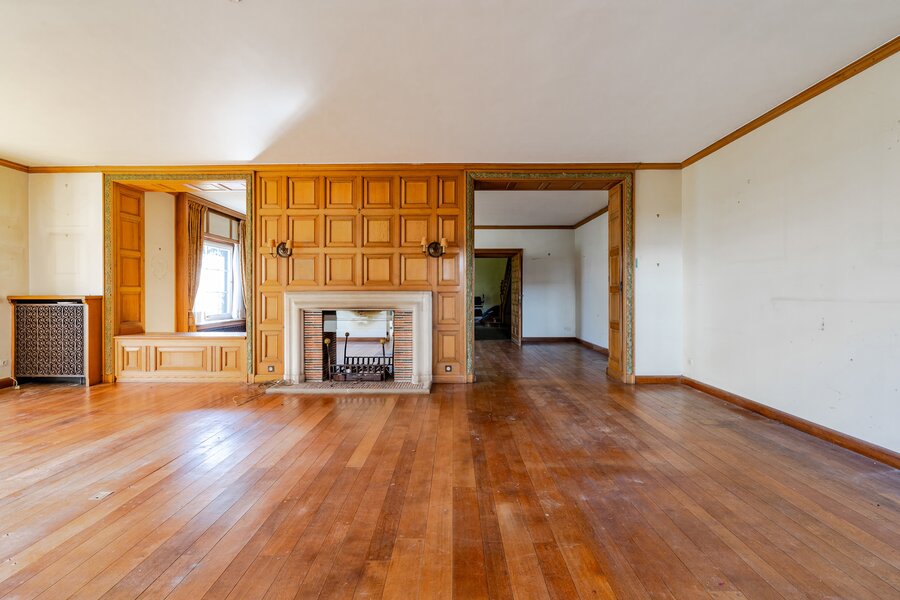 Elegant, light-filled reception rooms with parquet flooring and open fireplace