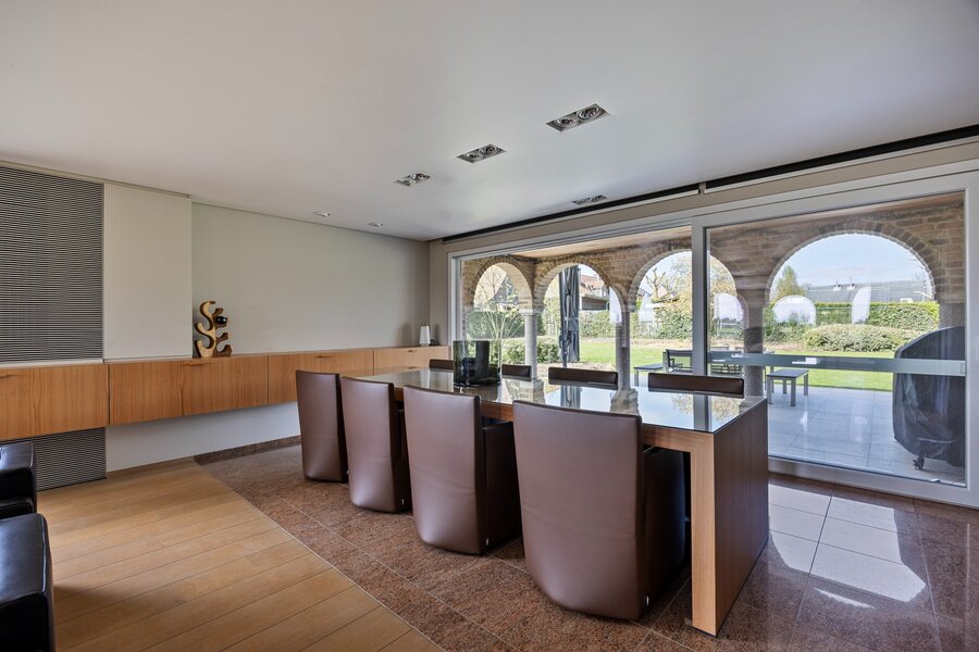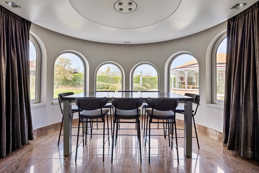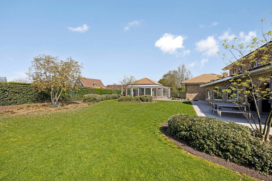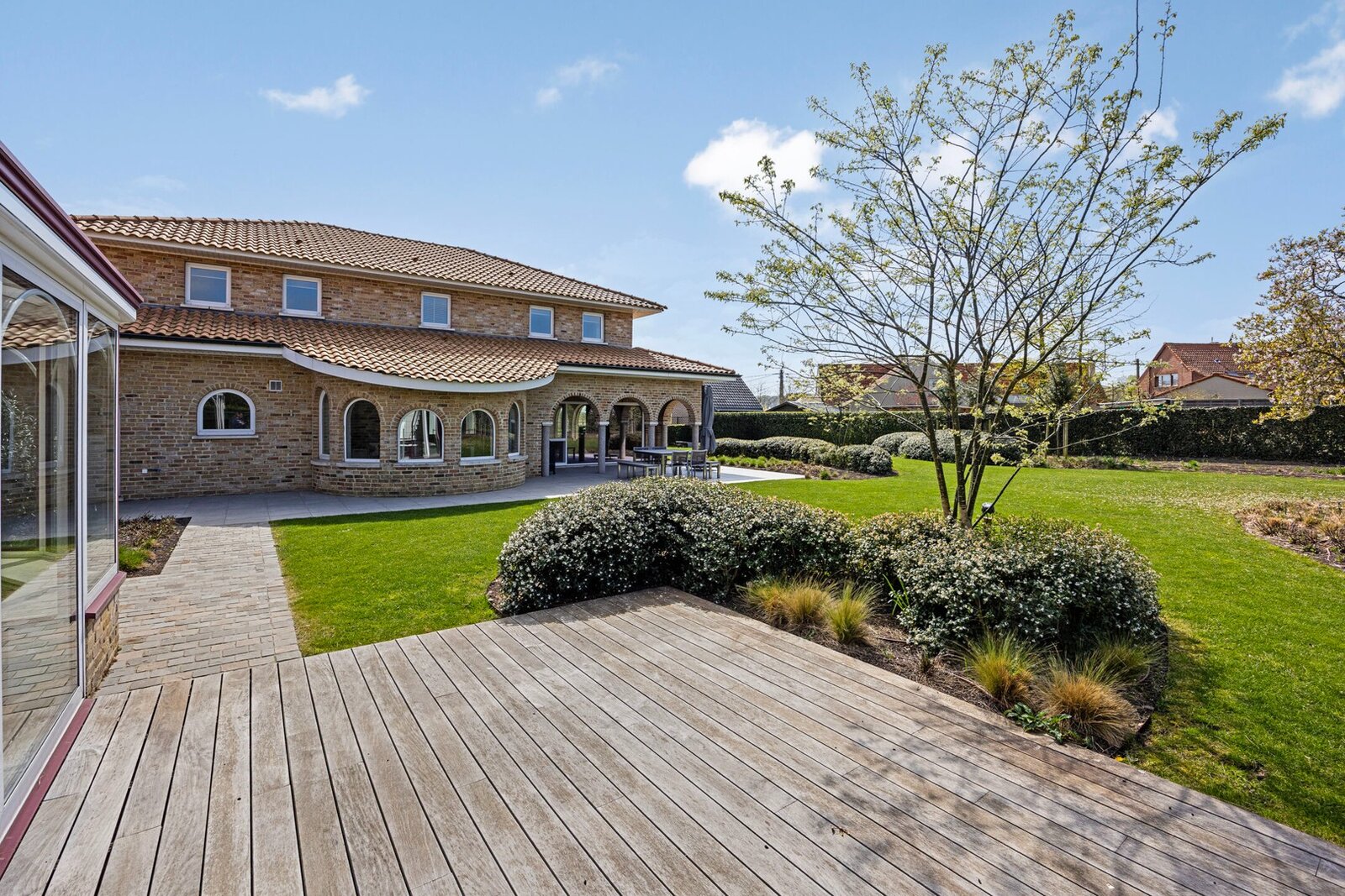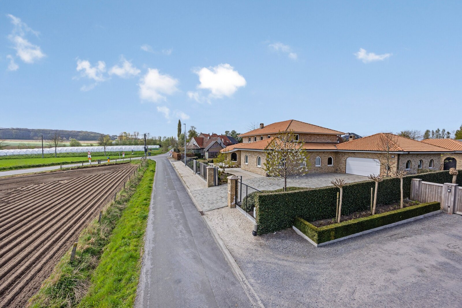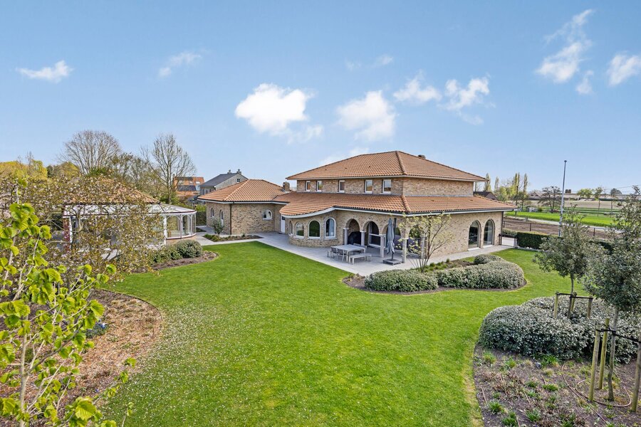 Te midden van het groene landschap van Deerlijk, met adembenemende landelijke vergezichten, vindt u deze uitzonderlijke gerenoveerde Spaanse villa. Een oase van rust, privacy en comfort, op een prachtig aangelegd perceel van 1.538 m². Deze unieke woning, biedt een bewoonbare oppervlakte van maar liefst 450 m², aangevuld met een stijlvolle orangerie van 95 m² – een echte eyecatcher met zuiders karakter. De villa is tijdloos ingericht en tot in de kleinste details afgewerkt met duurzame, hoogwaardige materialen. Instapklaar en perfect onderhouden. Indeling gelijkvloers: U betreedt de woning via een ruime inkomhal met gastentoilet. Verder is er een lichtrijke kantoorruimte met maatwerk inbouwkasten, een praktische wasruimte met bijkeuken, en een volledig uitgeruste keuken die naadloos aansluit op de eetplaats. De sfeervolle woonkamer is voorzien van ingebouwde kasten en straalt klasse uit. De master bedroom beschikt over een eigen dressing en een luxueuze badkamer met inloopdouche en dubbele lavabo. Daarnaast is er een ruime kelder, wijnkelder, dubbele garage, tuinhuis en een prachtige orangerie die zorgt voor een unieke extra leefruimte. Verdieping: Hier bevinden zich 4 ruime slaapkamers met ingebouwde kasten, waarvan één met toegang tot de zolder. De stijlvolle badkamer beschikt over een jacuzzi bad, Hammam+douche en dubbele lavabo. Er is een apart toilet en extra opbergruimte via de traphal. Extra troeven: -Volledig aangelegde, onderhoudsvriendelijke tuin (2021) met meerdere zonneterrassen en automatisch besproeiingssysteem -Domotica, elektrische gordijnen en centrale stofzuiger -Rust en privacy -Hoogwaardige afwerking, instapklaar Deze unieke woning combineert charme, ruimte en modern comfort in een idyllische setting. Een droomhuis voor wie op zoek is naar exclusiviteit en levenskwaliteit