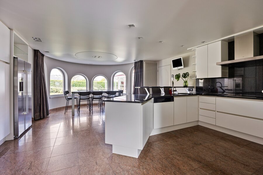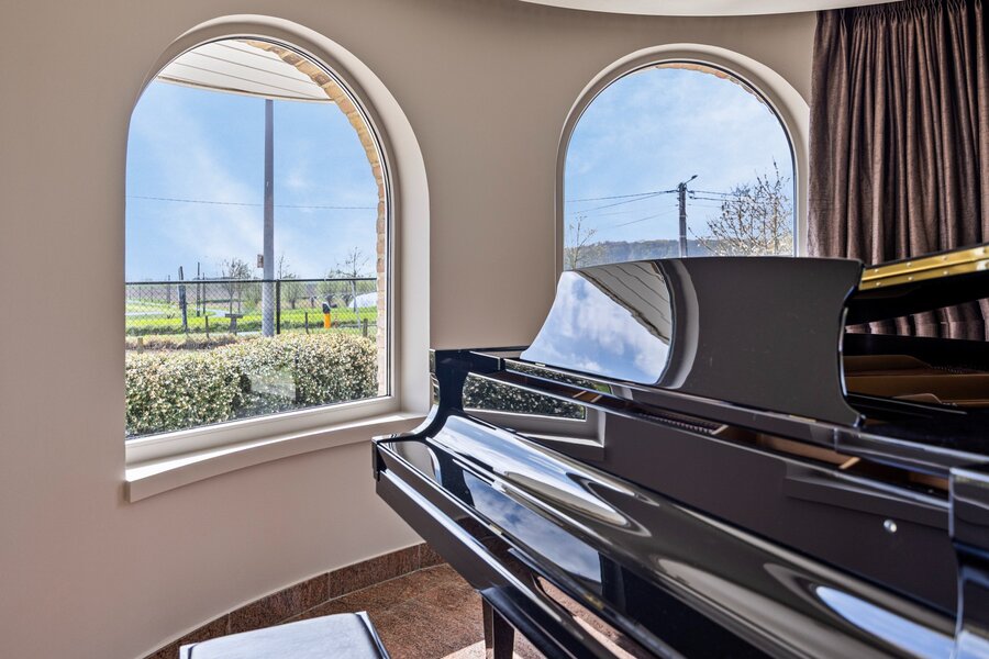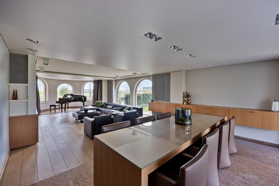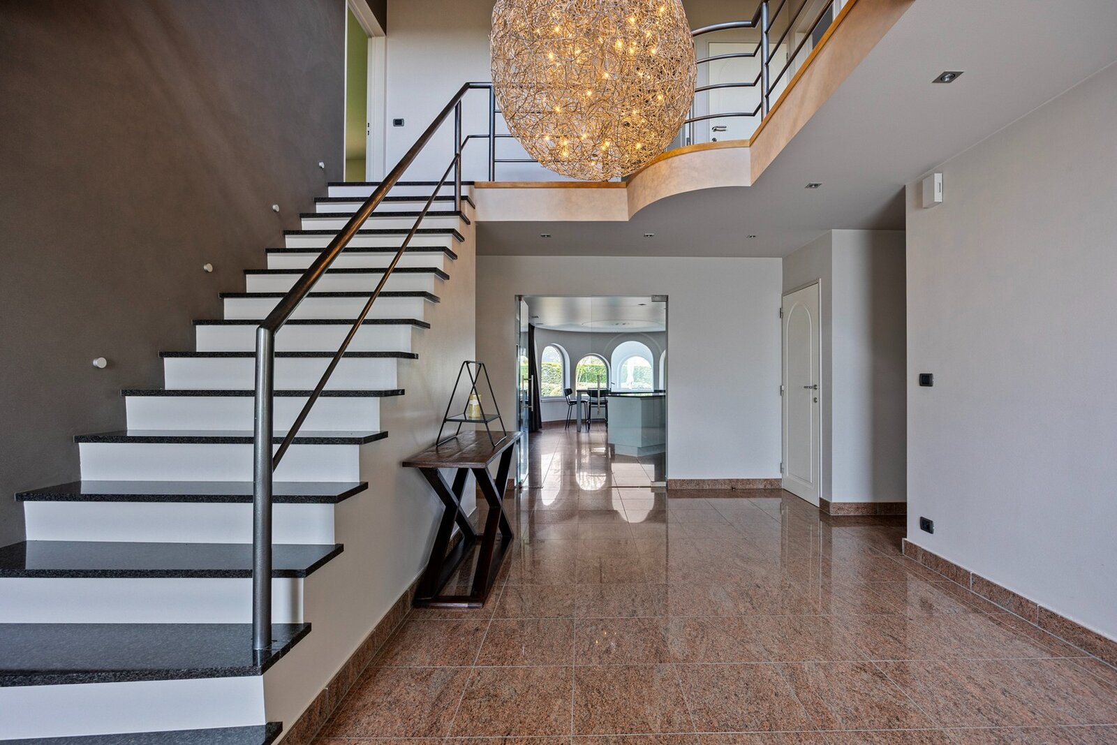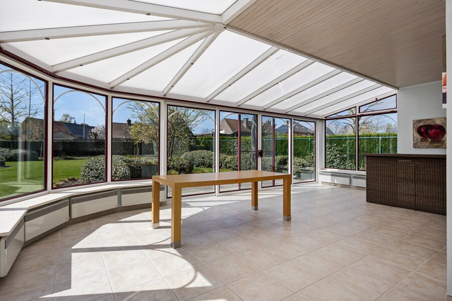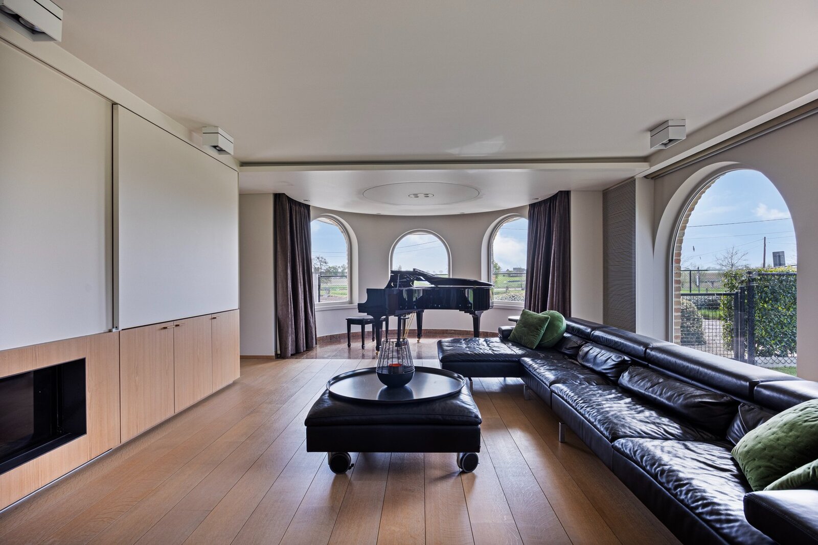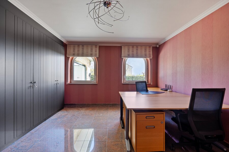 Te midden van het groene landschap van Deerlijk, met adembenemende landelijke vergezichten, vindt u deze uitzonderlijke gerenoveerde Spaanse villa. Een oase van rust, privacy en comfort, op een prachtig aangelegd perceel van 1.538 m². Deze unieke woning, biedt een bewoonbare oppervlakte van maar liefst 450 m², aangevuld met een stijlvolle orangerie van 95 m² – een echte eyecatcher met zuiders karakter. De villa is tijdloos ingericht en tot in de kleinste details afgewerkt met duurzame, hoogwaardige materialen. Instapklaar en perfect onderhouden. Indeling gelijkvloers: U betreedt de woning via een ruime inkomhal met gastentoilet. Verder is er een lichtrijke kantoorruimte met maatwerk inbouwkasten, een praktische wasruimte met bijkeuken, en een volledig uitgeruste keuken die naadloos aansluit op de eetplaats. De sfeervolle woonkamer is voorzien van ingebouwde kasten en straalt klasse uit. De master bedroom beschikt over een eigen dressing en een luxueuze badkamer met inloopdouche en dubbele lavabo. Daarnaast is er een ruime kelder, wijnkelder, dubbele garage, tuinhuis en een prachtige orangerie die zorgt voor een unieke extra leefruimte. Verdieping: Hier bevinden zich 4 ruime slaapkamers met ingebouwde kasten, waarvan één met toegang tot de zolder. De stijlvolle badkamer beschikt over een jacuzzi bad, Hammam+douche en dubbele lavabo. Er is een apart toilet en extra opbergruimte via de traphal. Extra troeven: -Volledig aangelegde, onderhoudsvriendelijke tuin (2021) met meerdere zonneterrassen en automatisch besproeiingssysteem -Domotica, elektrische gordijnen en centrale stofzuiger -Rust en privacy -Hoogwaardige afwerking, instapklaar Deze unieke woning combineert charme, ruimte en modern comfort in een idyllische setting. Een droomhuis voor wie op zoek is naar exclusiviteit en levenskwaliteit
