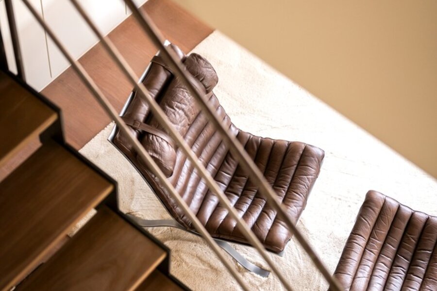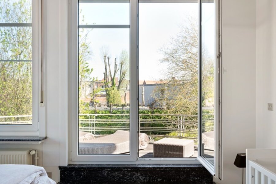 Binnenin valt meteen de overvloed aan natuurlijk licht op dankzij de grote raampartijen.
